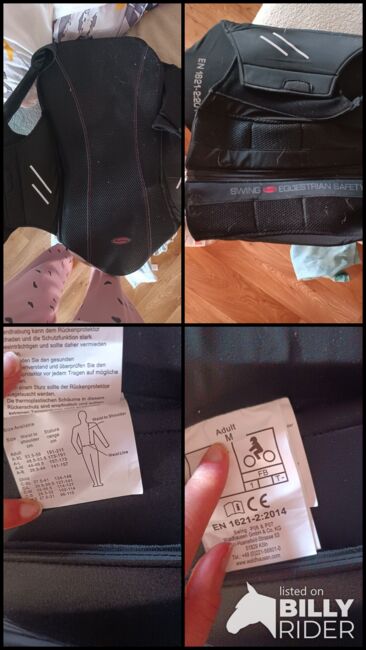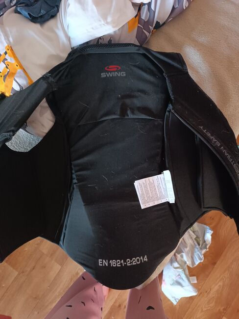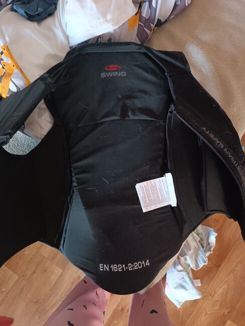 Kamizelka ochronna do jazdy konnej SWING - rozmiar M - Na sprzedaż jeździecka kamizelka ochronna firmy Swing (Equestrian Safety). Norma: EN 1621-2 (ochraniacz pleców) Kolor: czarny Stan: używana, ale w pełni funkcjonalna (patrz zdjęcia) Indywidualnie regulowana za pomocą rzepów Idealna dla początkujących lub rekreacyjnych jeźdźców.