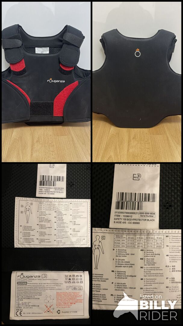 Kamizelka ochronna Fouganza Safety 100 rozmiar 110 - Kamizelka jeździecka Safety 100 składa się z perforowanych warstw pianki dla lepszej wentylacji. Zapięcia na rzepy dobrze przylegają i gwarantują wsparcie i bezpieczeństwo podczas jazdy.
