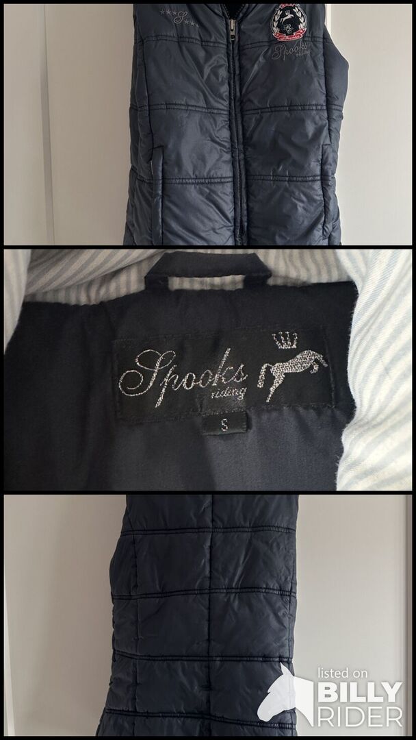 Kamizelka Spooks S - Oferuję granatową pikowaną kamizelkę firmy Spooks w rozmiarze S. Idealna na okres przejściowy lub jako dodatkowa warstwa w chłodniejsze dni.