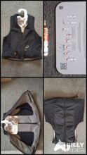 Kamizelka jest w bardzo dobrym stanie i w pełni funkcjonalna. Zawiera 2 wkłady (jeden zamontowany).