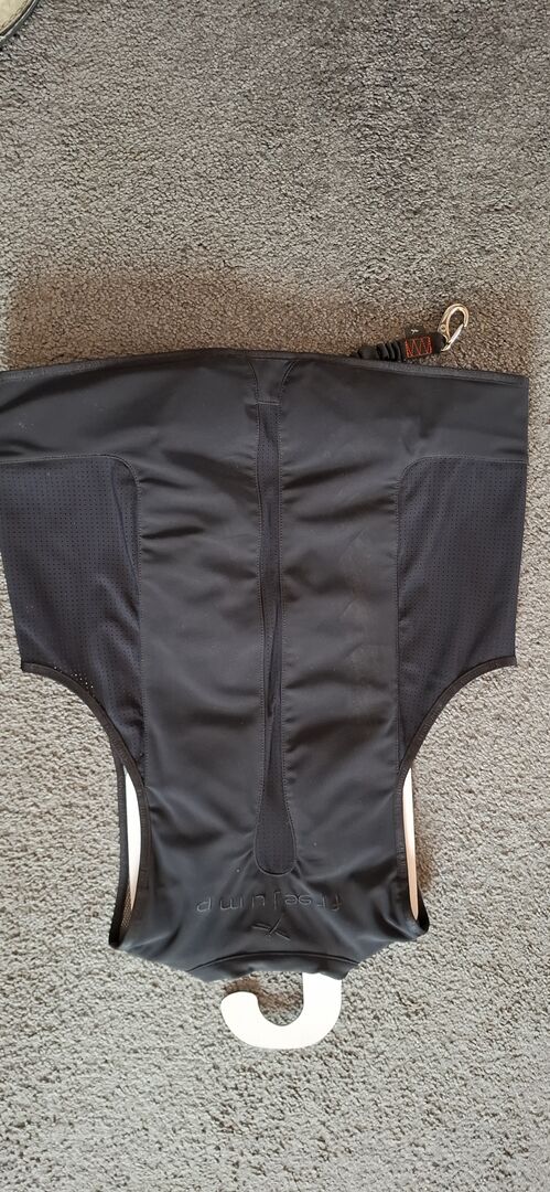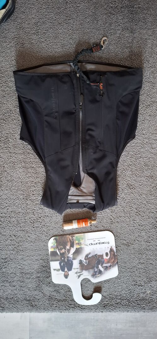 Kamizelka z poduszką powietrzną freejump rozmiar L z 2 wkładami - FREEJUMP AIRBAG to kamizelka ochronna, która została opracowana specjalnie dla sportów jeździeckich, aby chronić ważne obszary jeźdźca w razie upadku. Może być noszona na cienkiej warstwie odzieży (T-shirt, bluza lub lekki sweter) lub na kurtce. Wykonana z jedwabistej włoskiej tkaniny z perforowanymi bokami, poduszka FREEJUMP AIRBAG zapewnia wyjątkowy komfort i oddychalność. Indywidualny krój i konstrukcja z elastycznych materiałów zapewniają optymalną ochronę i maksymalny komfort.