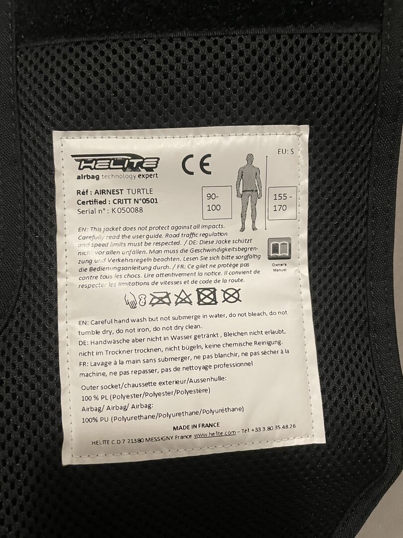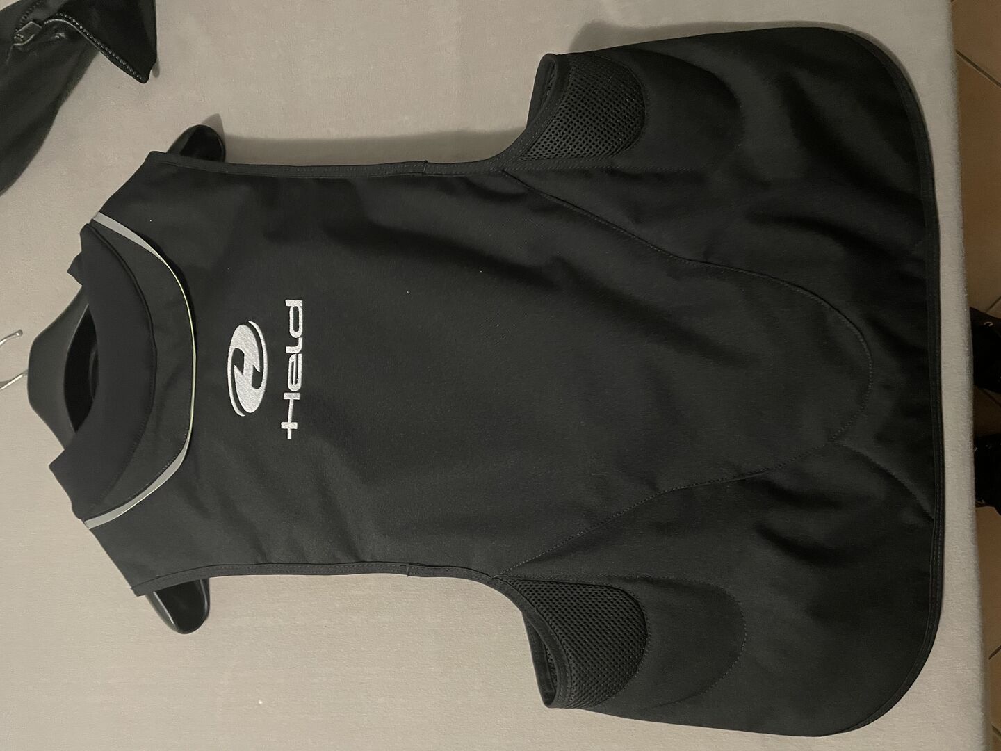 Kamizelka z poduszką powietrzną Held/Helite - Sprzedam kamizelkę z poduszką powietrzną Held Helite w rozmiarze S (unisex). Kamizelkę założyłem tylko 3 razy na torze wyścigowym. Jest więc jak nowy i nie posiada żadnych uszkodzeń. Może być również doskonale wykorzystywany do jazdy konnej. W zestawie znajduje się również zapasowy wkład. NP: 499€