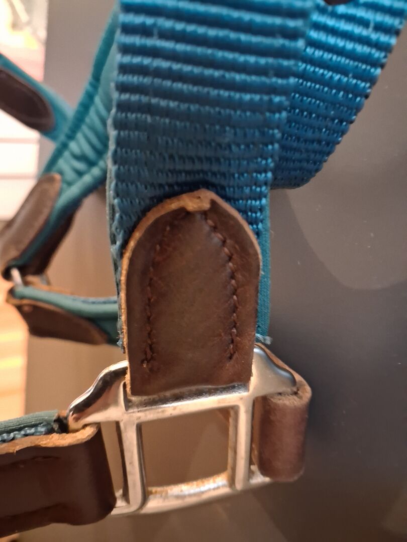 Kantar dla konia - Kantar dla konia rasy Warmblood marki Felix Bühler - zielony - w bardzo dobrym stanie Sprzedaję wysokiej jakości kantar Felix Bühler w rozmiarze dla koni pełnej krwi angielskiej. Był używany, ale zawsze traktowany z należytą starannością i dlatego jest w bardzo dobrym stanie. Brak rozdarć, brak uszkodzonych szwów, wszystkie okucia stabilne. Kantar został świeżo wyprany i jest gotowy do natychmiastowego użycia.