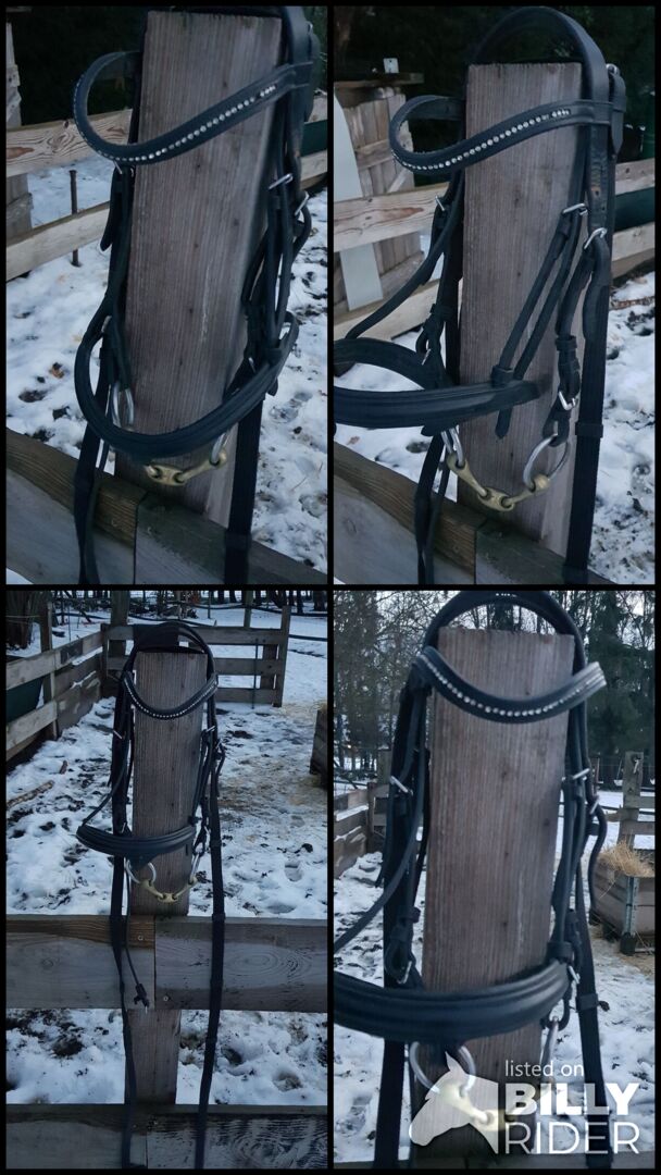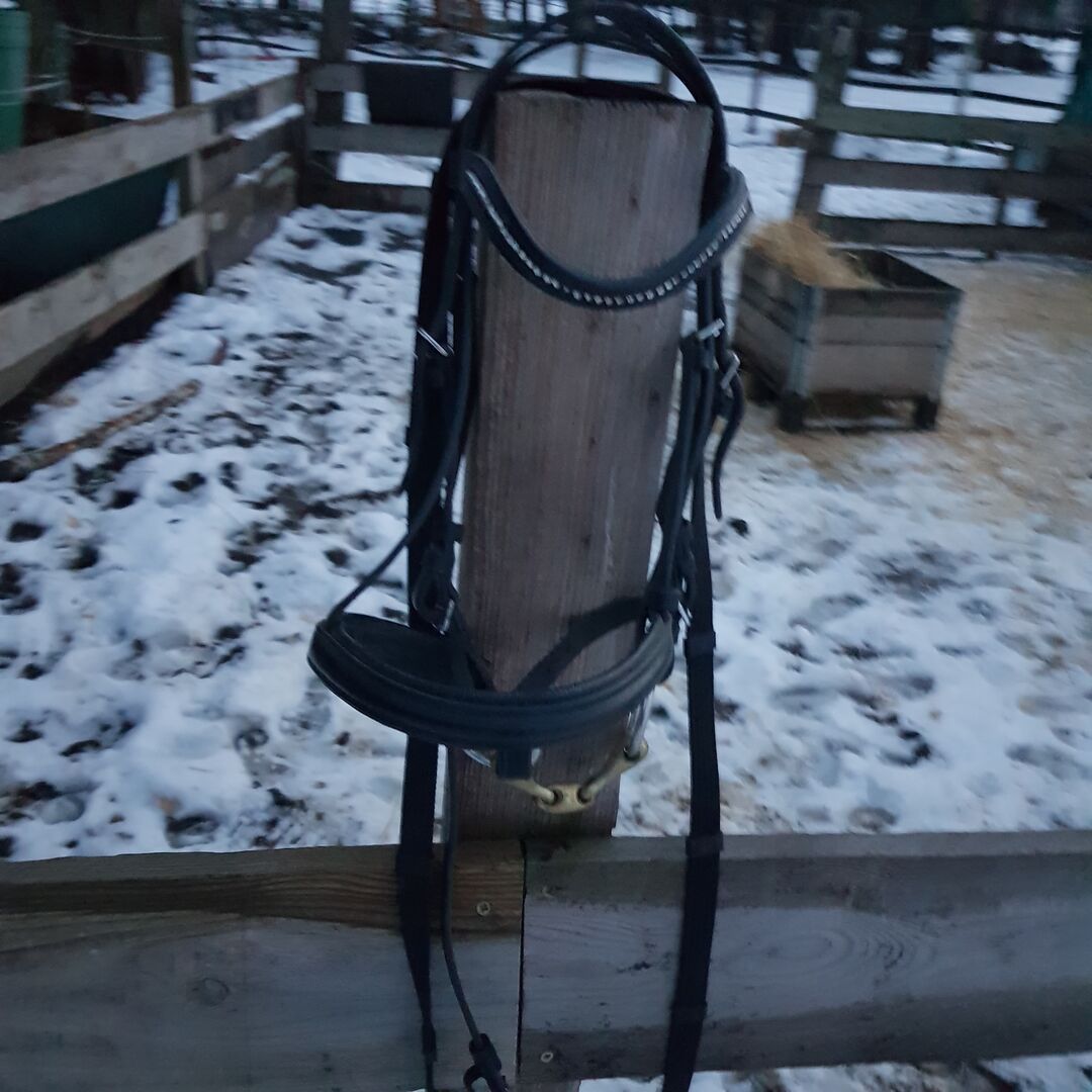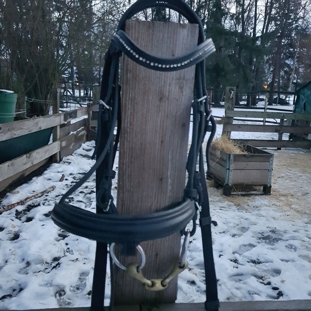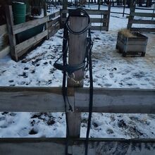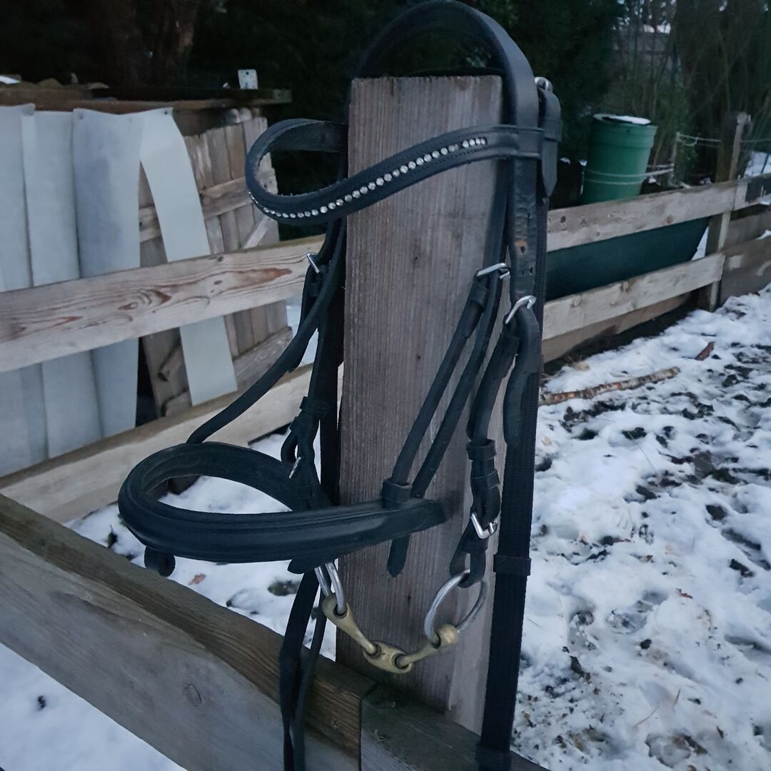 Karabińczyk dla kucyka - Na sprzedaż używana uzda dla kucyka z bitem i lejcami, ale mam też inne bity, które wciąż można wymienić.