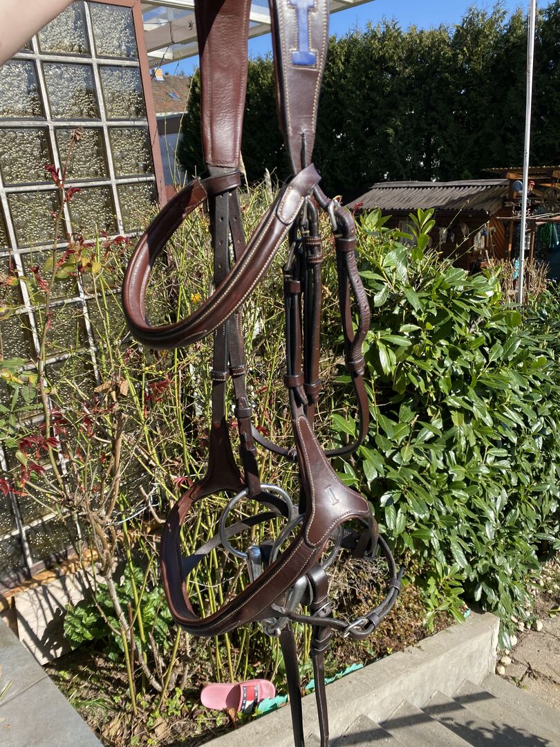 Karabińczyk kliniczny - Sprzedam mój brązowy snaffle Ikonic. Uzda jest w doskonałym stanie i posiada normalne ślady użytkowania. Dostarczany jest z oryginalnymi lejcami i opcjonalnie z bitem. Uzda ma szerszą część szyjną z niebieskim symbolem Ikonic.