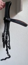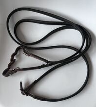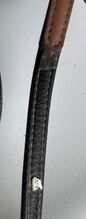 Karabińczyk Sabro w rozmiarze VB, w tym lejce - Wędzidło Sabro, czarne / częściowo brązowe, podszyte brązowymi szwami. W komplecie wodze Sabro