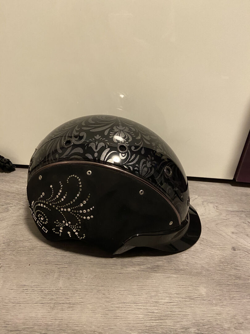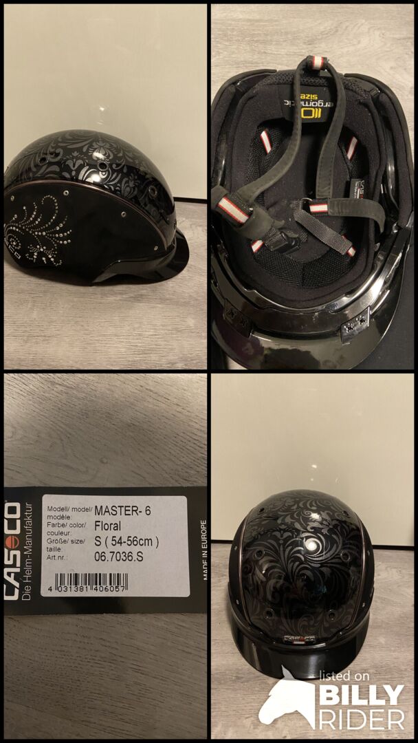Kask jeździecki Casco Master-6 Floral | S 54-56cm - Na sprzedaż jest prawie nowy kask jeździecki firmy Casco. Był noszony 2 razy na wystawie, a poza tym zawsze był w torbie na kask. Nie posiada żadnych zadrapań ani podobnych elementów. Jest wolny od upadku! Rozmiar: S / 54-56cm Są tam wszystkie kamienie z brokatem.