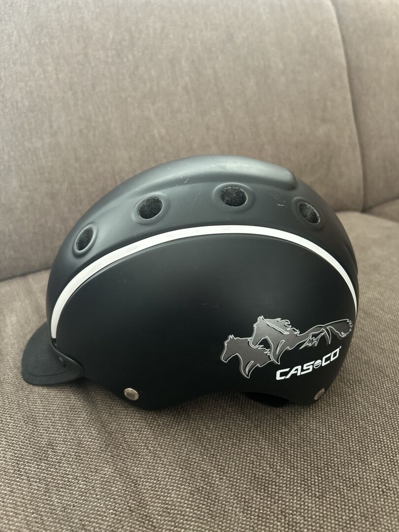 Kask jeździecki Casco rozmiar S (52-56 cm) - Kask jeździecki Casco bezwypadkowy. Lekkie zadrapania w górnej części (patrz zdjęcia).