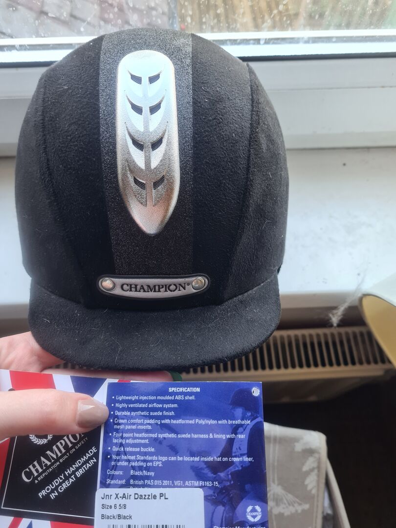 Brand new Champion glitter riding helmet size 54 paid 94 pound would like what I paid for it only selling due to not fitting worn around the house to test it out can't take back as I lost the receipt now just sitting in a cupboard collecting dust