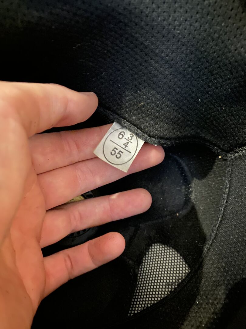 Kask jeździecki Euro-Lite - Kask jeździecki Euro-Lite w rozmiarze 55 (6 3/4). Bezwypadkowy, ale ma wgniecenie w przedniej części kołpaka, ponieważ upadł na ziemię (patrz zdjęcie). Zapięcie nie ma żadnych wad i jest regulowane.