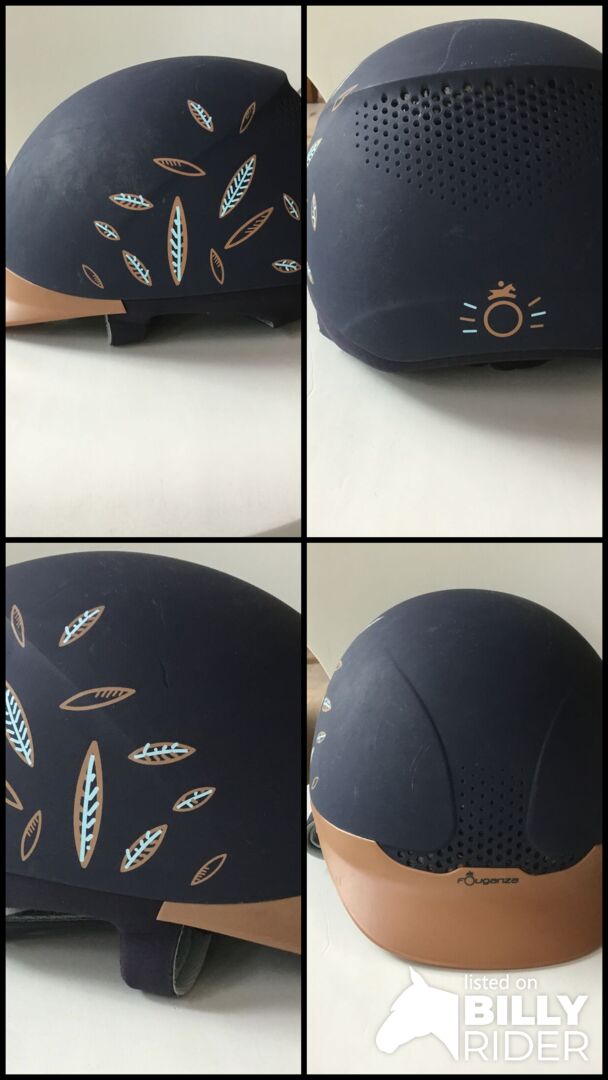 Kask jeździecki Fouganza 55-57 cm - Do sprzedania jest kask jeździecki firmy Fouganza w rozmiarze 55-57 cm. Kask jest w dobrym stanie, ale ma kilka zadrapań, które nie są zauważalne. Jeśli masz jakieś pytania, skontaktuj się ze mną!