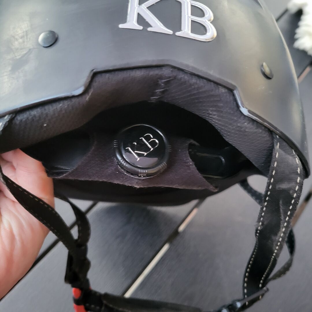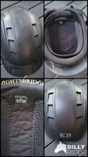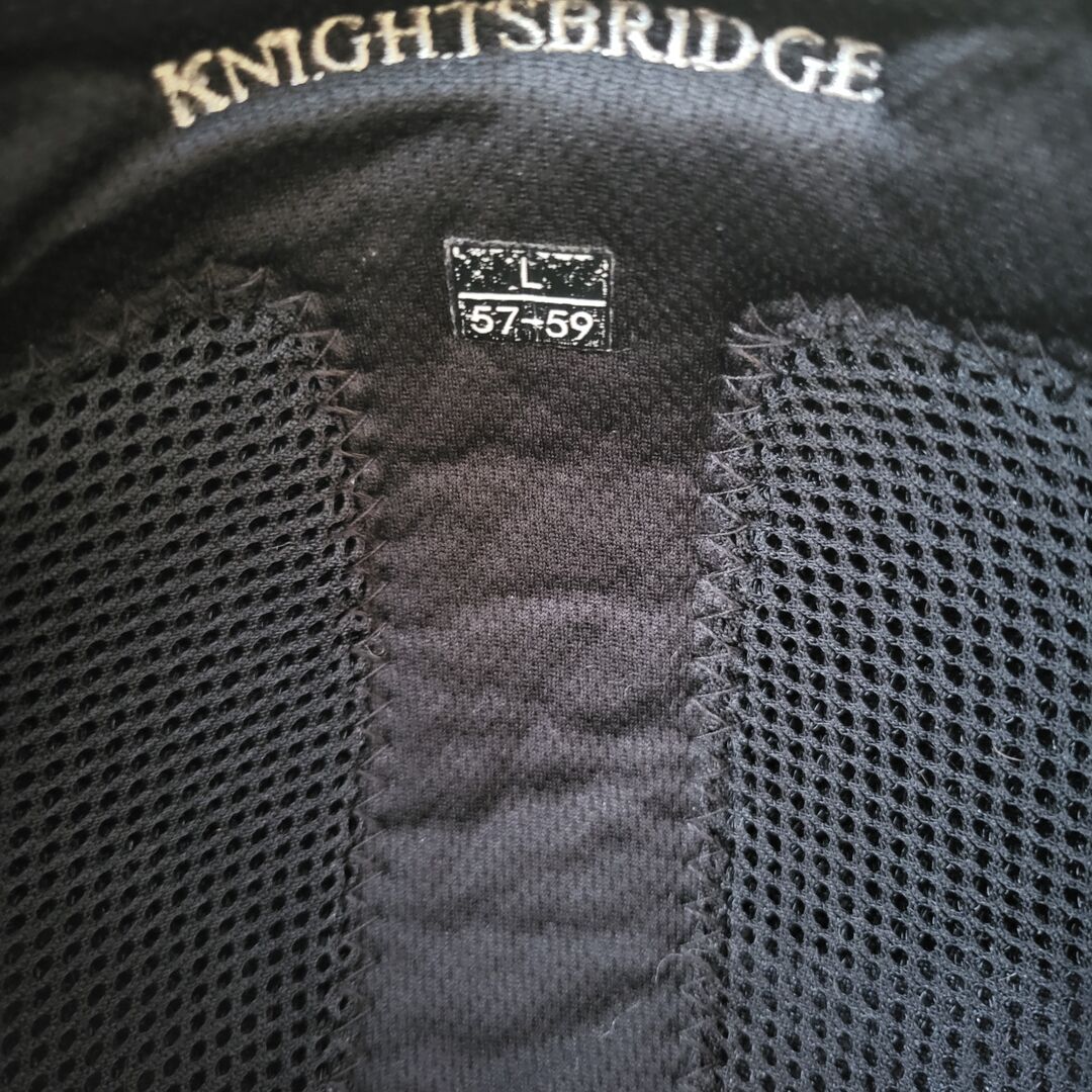 Kask jeździecki Knightsbridge - Sprzedam używany plastikowy czaprak jeździecki firmy Knightsbridge w rozmiarze od L 57 do 59 w kolorze ciemnobrązowym/czarnym.