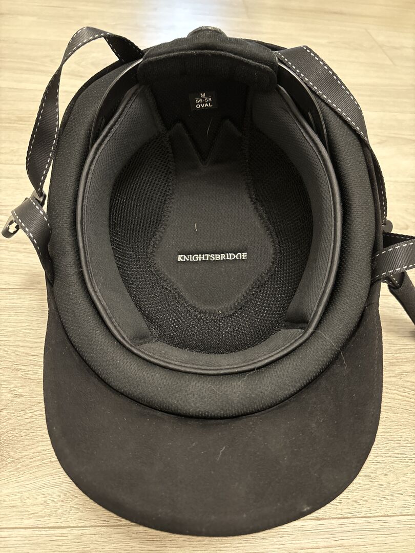 Kask jeździecki KNIGHTSBRIDGE rozmiar M (56-58 cm) - mało noszony, najwyższa jakość - Oferuję mało używany kask jeździecki KNIGHTSBRIDGE w rozmiarze M (56-58 cm, owalny krój). Kask był używany tylko około 5 razy i jest w bardzo dobrym, zadbanym stanie - bez upadków, bez uszkodzeń.