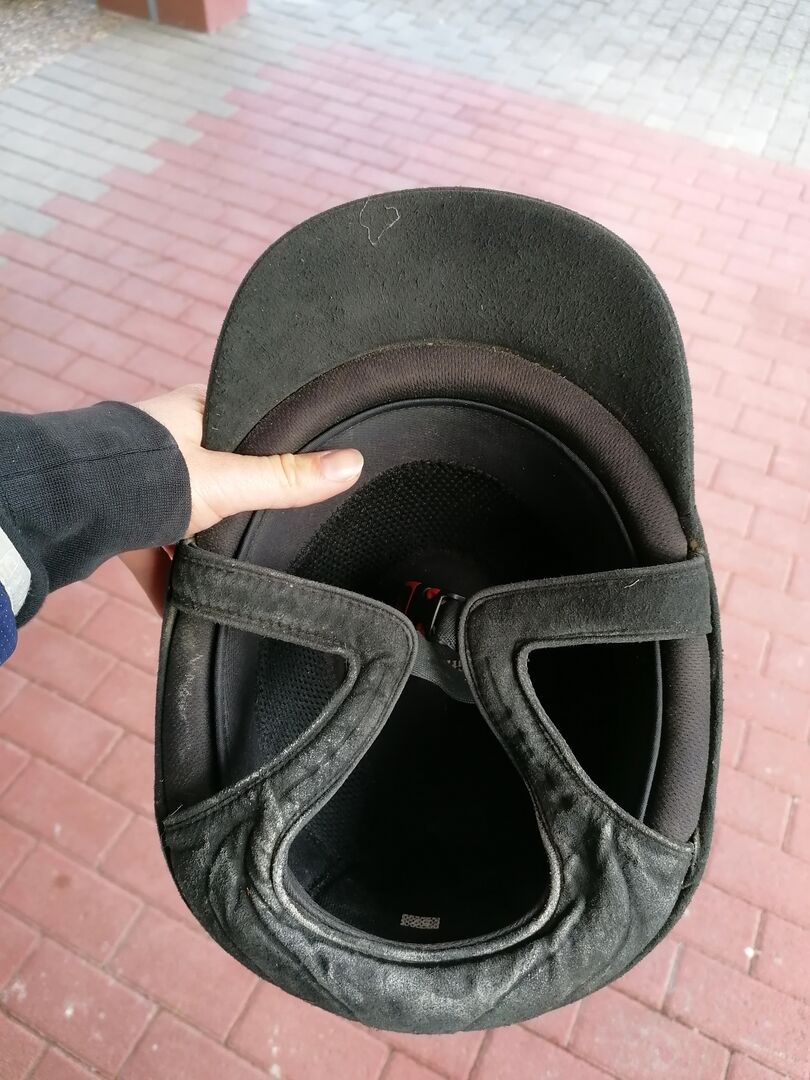 Kask jeździecki (Krämer) - Kask jest bezwypadkowy, a rozmiar 57 cm jest doskonały. W kaskach Uvex noszę rozmiar XS