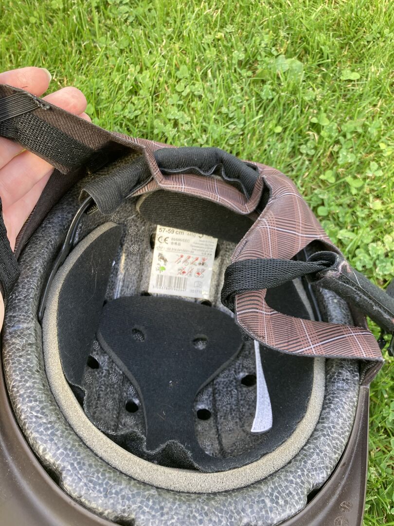 Kask jeździecki na sprzedaż! - Kask jeździecki jest brązowy i prawie nieużywany. Rozmiar to M (57-59cm).