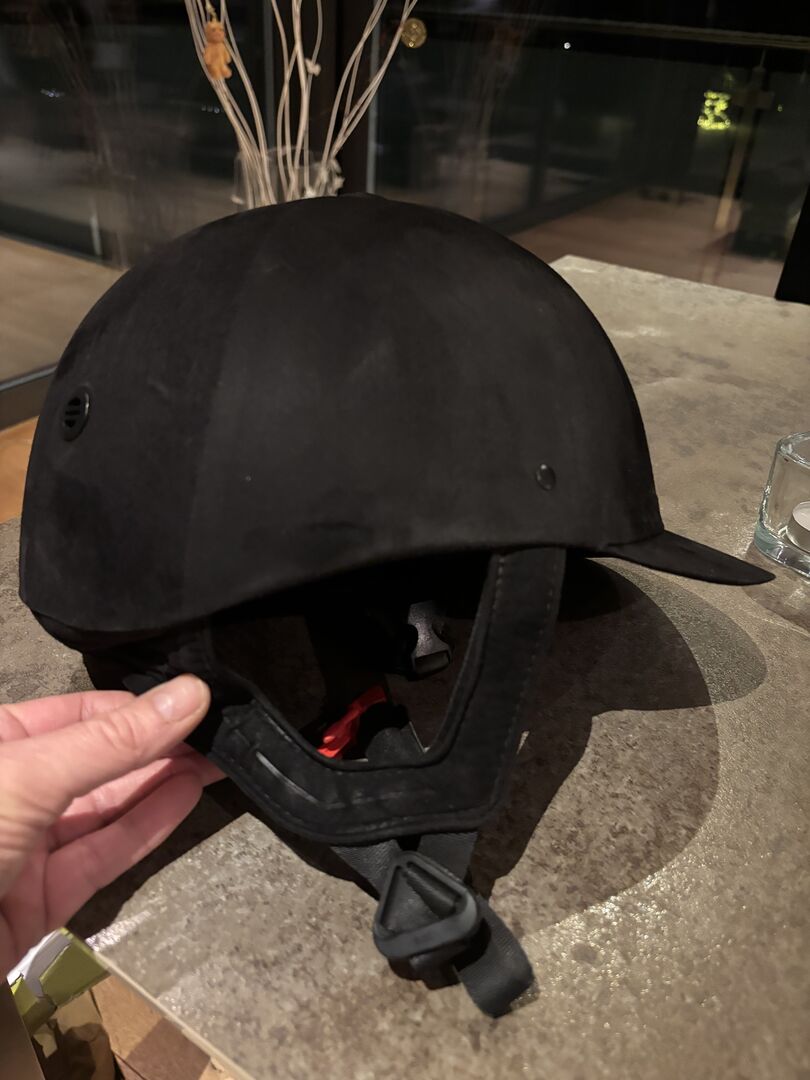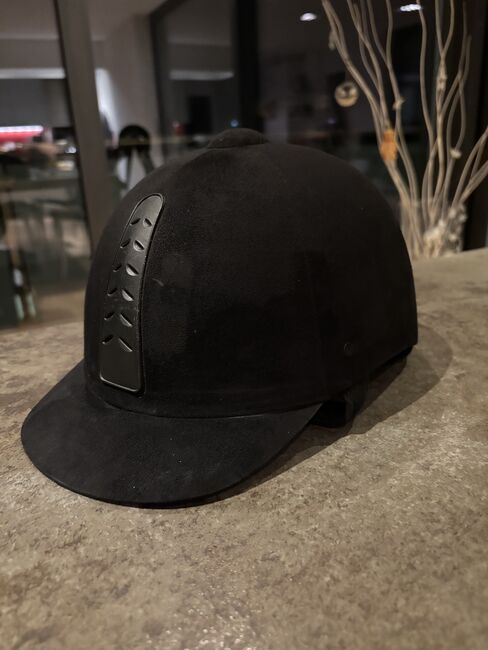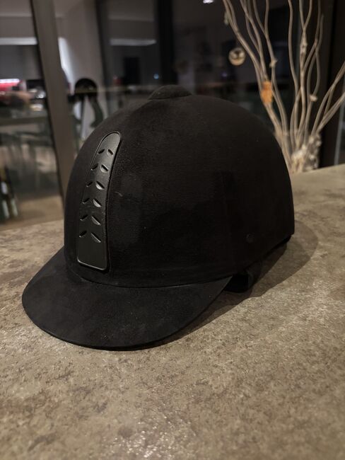 Kask jeździecki od Felix Bühler - Kask jeździecki w kolorze czarnym o welurowym wyglądzie. Rozmiar: 56 cm Trzypunktowe zapięcie na zatrzask Używany - jak nowy - gwarancja STURZFREI! Marka Felix Bühler
