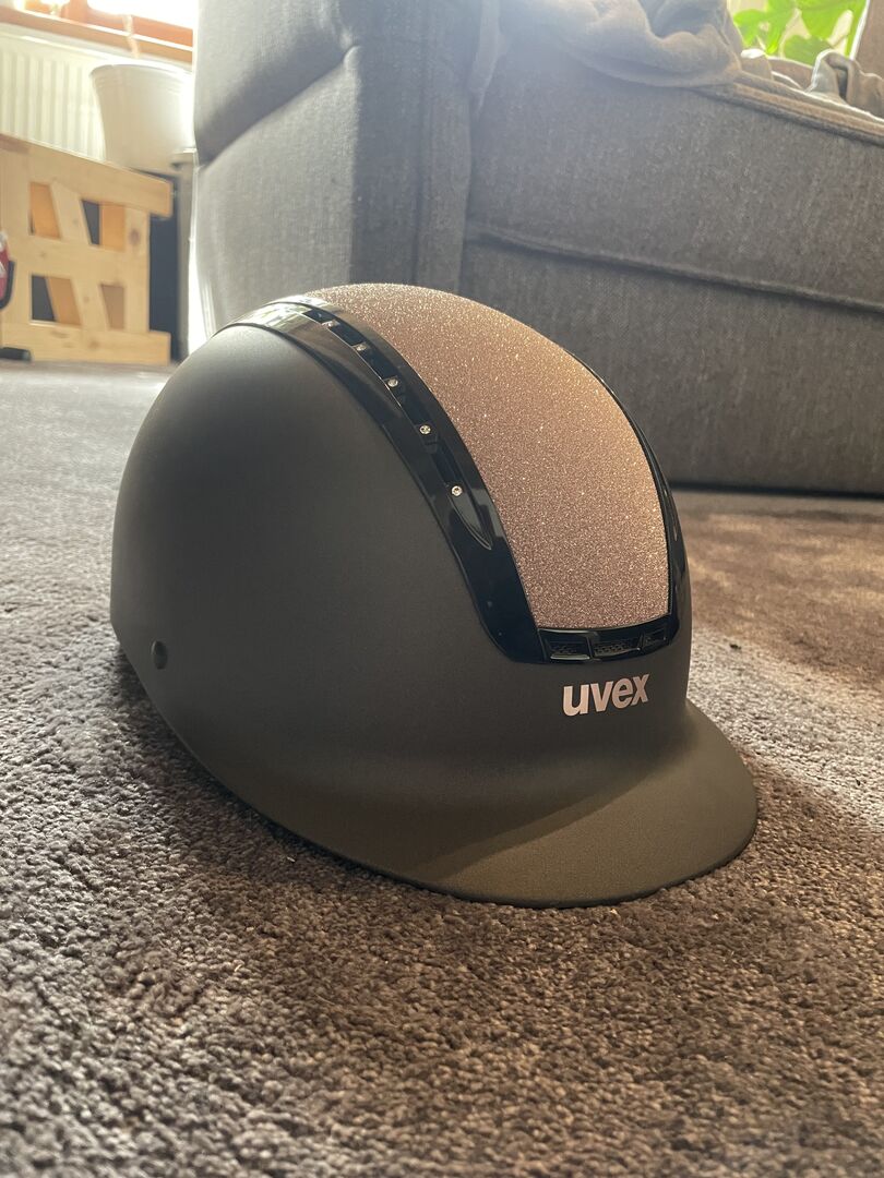 Kask jeździecki Uvex - Sprzedam mój 2x noszony kask jeździecki firmy Uvex w rozmiarze M-L. Jest bez upadków. W razie potrzeby można go również przymierzyć.
