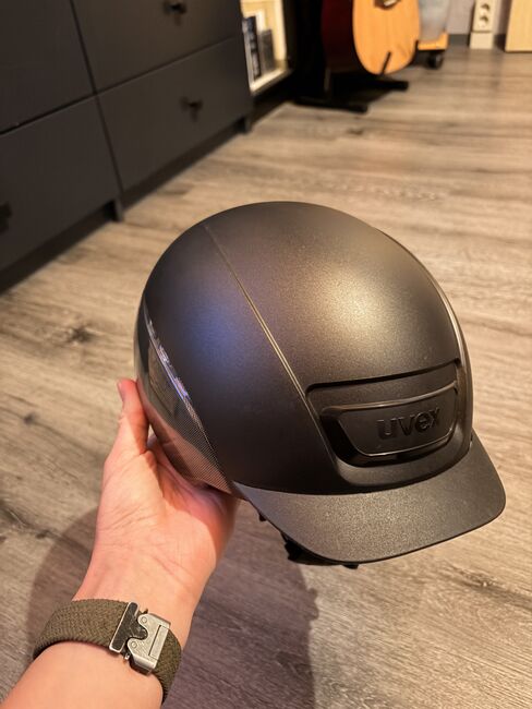 Kask jeździecki Uvex Elexxion Tocsen - Sprzedaję mój kask jeździecki Uvex Elexxion Tocsen z powodu nowego zakupu. Kask jest w dobrym stanie. Ma minimalne ślady zużycia w postaci drobnych zadrapań, które można zobaczyć tylko po dokładnym przyjrzeniu się. Rysy są tak małe, że nie można ich pokazać na zdjęciach. Kask jest oczywiście bezwypadkowy!