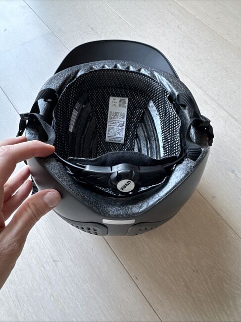 Kask jeździecki Uvex tylko trochę noszony w bardzo dobrym stanie! Rozmiar M- L, 57-59 cm - Założone tylko kilka razy, niestety nie mogę już jeździć z powodu kontuzji. Heöm kosztował 120 euro za nowy.