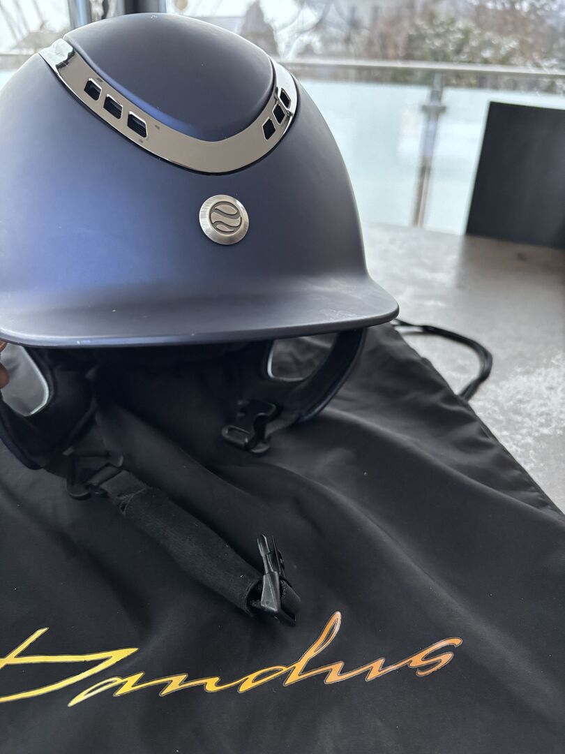 Kask jeździecki z MIPS - Piękny !!!NOWY! Kask jeździecki Back on track, gładki, niebieski. Rozmiar M dla obwodu głowy 56-58 cm. Z systemem MIPS dla bardzo wysokiego bezpieczeństwa w przypadku uderzenia. 3-punktowe zapięcie i kółko do regulacji rozmiaru. Z oryginalną torbą na kask.