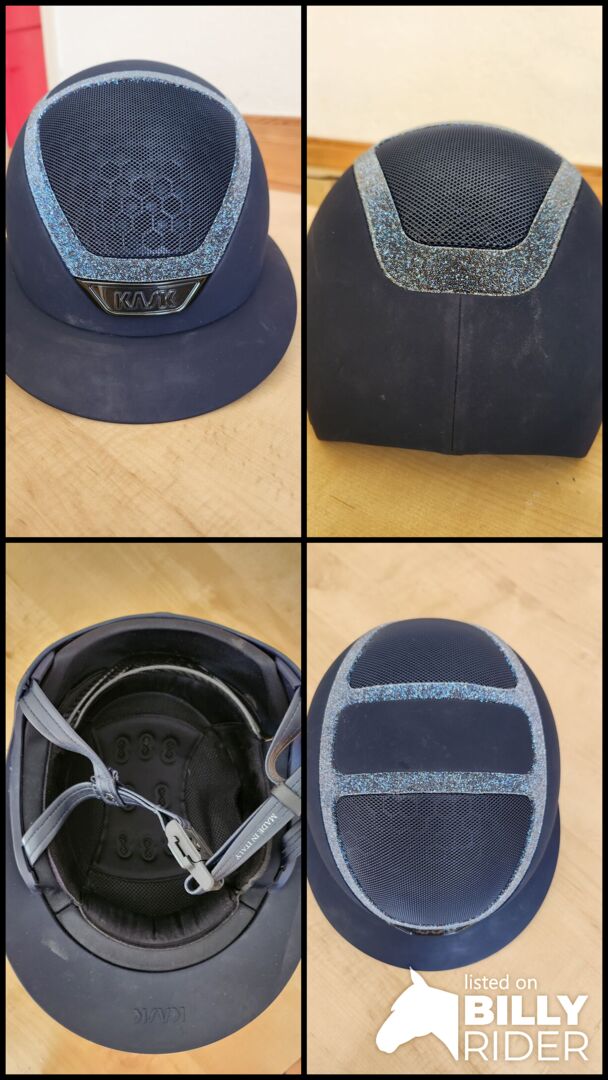 Kask jeździecki ze swarowskim - Oferuję mój 2 kask, który miałem na sobie około 10 razy tylko jak zaczynałem w niebieskim. Nie pasuje mi optymalnie do kształtu głowy, wkładki do tych kasków można dokupić dodatkowo. Nowy kosztuje ponad 1000CHF Sprzedaję go z torbą na kask samshield rozmiar 57