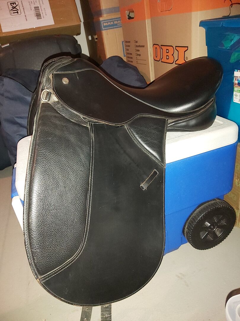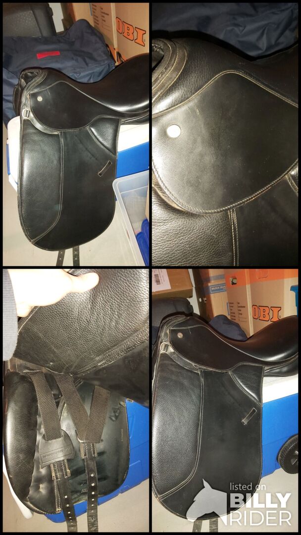 Kavalkade Siodło ujeżdżeniowe Fidelio 17" Drugie siodło 32Chamber - mało używane siodło Kavalkade model Fidelio z siedziskiem 17" i komorą 32 do sprzedania. Siodło było używane jako drugie siodło i ma tylko jedną wadę, patrz zdjęcie.