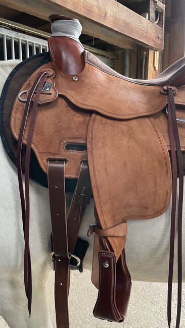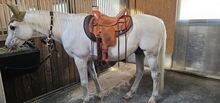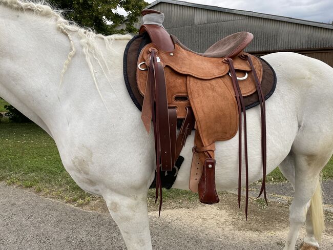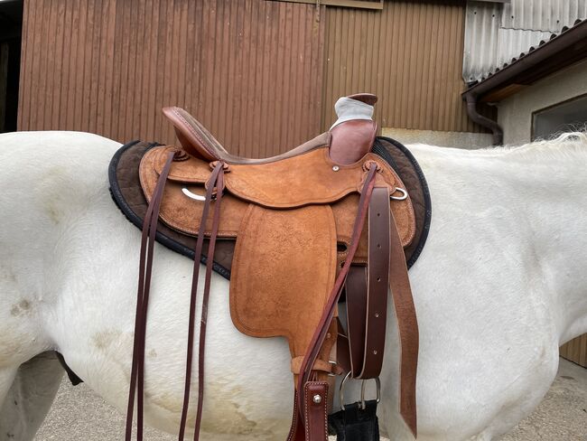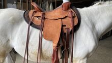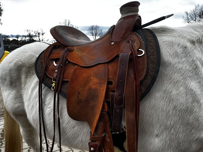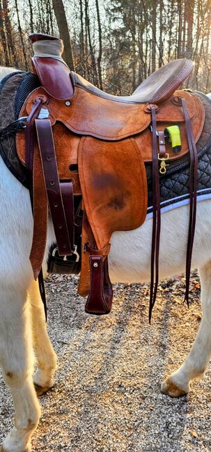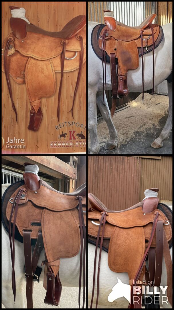 Kenner-Store Equiflex Ladies Allrounder Seat rozmiar 16 - Sprzedaję moje ukochane westernowe siodło, ponieważ mój koń przeszedł na zasłużoną emeryturę. Jest to Specjalne siodło Equiflex "Ladies Allrounder" - ok. 60/61 cm długości - Nowe Castano Rough out - Widelec, Cheyenne Roll i strzemiona z gładkiej skóry. - Siedzisko skóra nubukowa brązowa - Błotnik wytoczony o.B. - Znakowanie podwójną linią o.B. Rozmiar siedziska 16 10 lat gwarancji na drzewo siodła i wykonanie