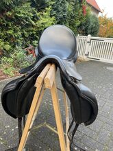 Kentaur Aphrodite siodło ujeżdżeniowe 17" - szerokość komory 3 - najlepszy stan! - Sprzedaję moje dobrze utrzymane siodło ujeżdżeniowe Kentaur Aphrodite w kolorze czarnym z siedziskiem 17" i szerokością komory 3. Siodło zawsze było traktowane z troską, regularnie konserwowane i jest w bardzo dobrym, prawie menniczym stanie - bez pęknięć, bez głębokich zadrapań, bez znaczącego zużycia. Strzemiona były zawsze przymocowane pod klapą siodła.