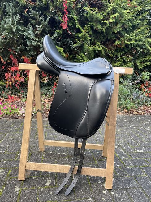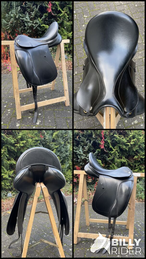 Głębokie siedzisko, anatomicznie ukształtowane wałki kolanowe - idealne do spokojnej pozycji nóg i precyzyjnego kontaktu Siodło idealne dla jeźdźców ceniących klasyczną pozycję ujeżdżeniową, wysoki komfort i doskonałą jakość wykonania.