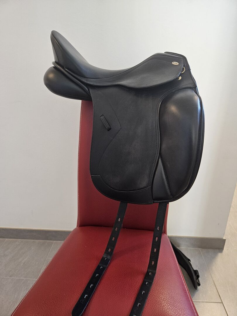 Kentaur Elektra 16,5 cala - Sprzedam siodło ujeżdżeniowe Kentaur Elektra 16,5 cala. Siodło było dopasowane do małego konia rasy warmblood (159cm) z wyraźnymi łopatkami. Siodło jest bardzo wygodne i zapewniało dobre wsparcie podczas jednej lub drugiej jazdy kaskaderskiej mojego konia. Siodło jest w bardzo dobrym stanie (patrz zdjęcia), zawsze zadbane i dobrze przechowywane. Siodło było używane przez ok. 1 rok, ale teraz przesiadam się na siodło skokowe.