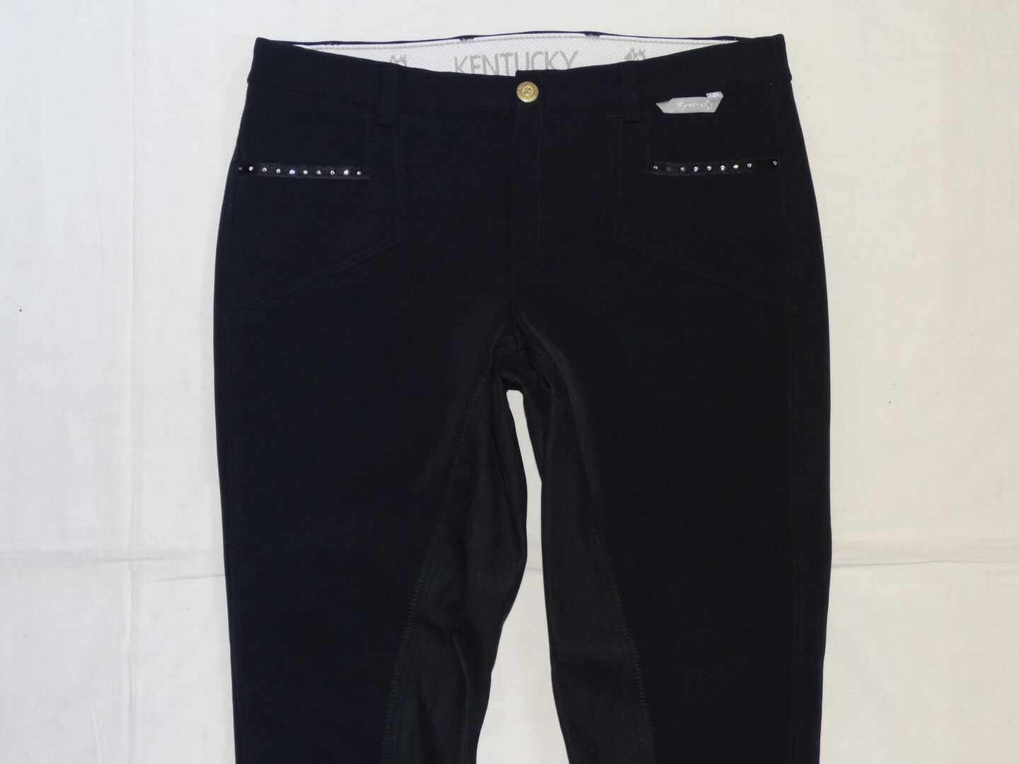 Kentucky City Strass Winter Softshell Leatherette Breeches 88/44Long Schoeller WB-400* - Mam do oddania mało noszone bryczesy damskie Kentucky City Strass Winter Softshell od koleżanki. Rozmiar 88/44Long. Kolor czarny (ostatnie trzy zdjęcia przedstawiają je w kolorze niebieskim).