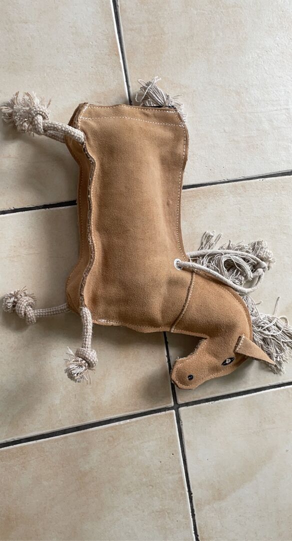 Kentucky Relax Koń zabawka - kucyk - beżowy - Kupiłam tę zabawkę dla konia kilka dni temu, ale niestety nie sprawdziła się ona zbyt dobrze w przypadku mojej klaczy. Dlatego stan jest nieskazitelny! Wewnątrz konika znajduje się butelka z petem, która pęka i szeleści, gdy koń ją szturcha. Długość 40 cm.