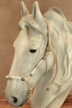 Opis Signum: Wędzidło boczne Vaquera jest idealnym towarzyszem do pracy na ziemi i jazdy konnej. Pasek na nos i policzki są pokryte ręcznie plecionymi elementami dekoracyjnymi wykonanymi z surowej skóry. Ozdoby te, inspirowane rodzinną Andaluzją Kenziego, nadają halterowi rustykalny, a jednocześnie elegancki wygląd i w wyjątkowy sposób podkreślają charakter konia. Dwa małe pierścienie zostały wbudowane w dwa węzły na grzbiecie nosa, do których można łatwo przymocować wodze. Pozwala to w subtelny sposób przenieść podstawy pracy naziemnej na jazdę konną.