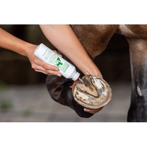 - Zapobiega procesom rozkładu rogów w obszarze żaby - Wystarczy nanieść na wyczyszczone na sucho bruzdy żaby i rozprowadzić, róg żaby staje się twardszy po 3-4 dniach stosowania - Zawartość: 250 ml, w praktycznej butelce dozującej