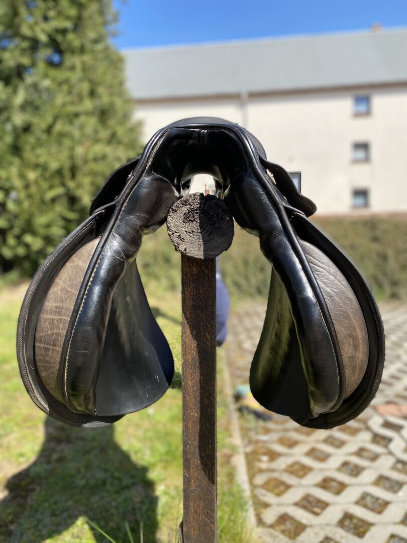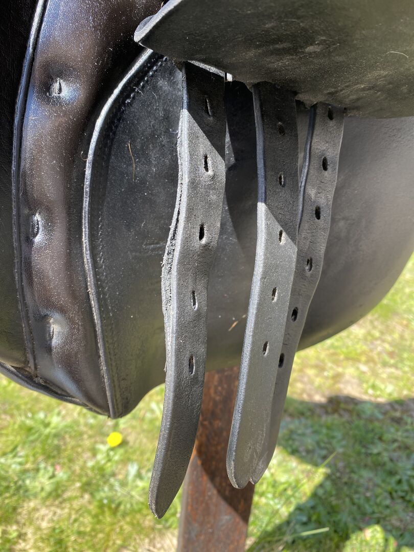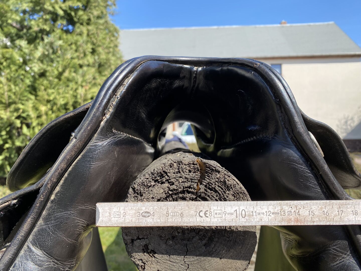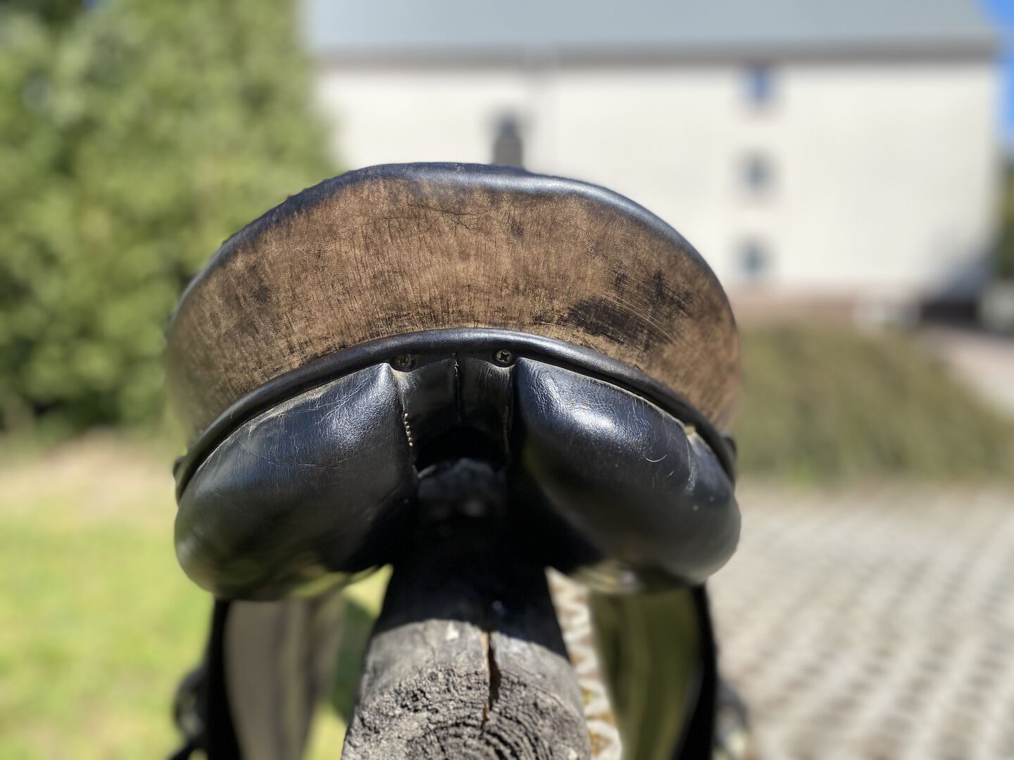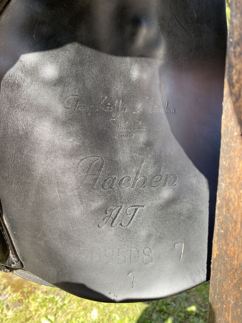 Kieffer Aachen AT Rozmiar gniazda 1, komora ok. 32 mm, VSD - Na sprzedaż używane siodełko Kieffer Aachen AT w kolorze czarnym. Rozmiar siedziska 1 so 17". Pokrycie siodła, a także skóry strzemion i ewentualnie strzemiona są wliczone w cenę. Komora powinna wynosić ok. 32. Miałem go dla niedawno wąskiego Trakehnera z dużą ilością kłębu.