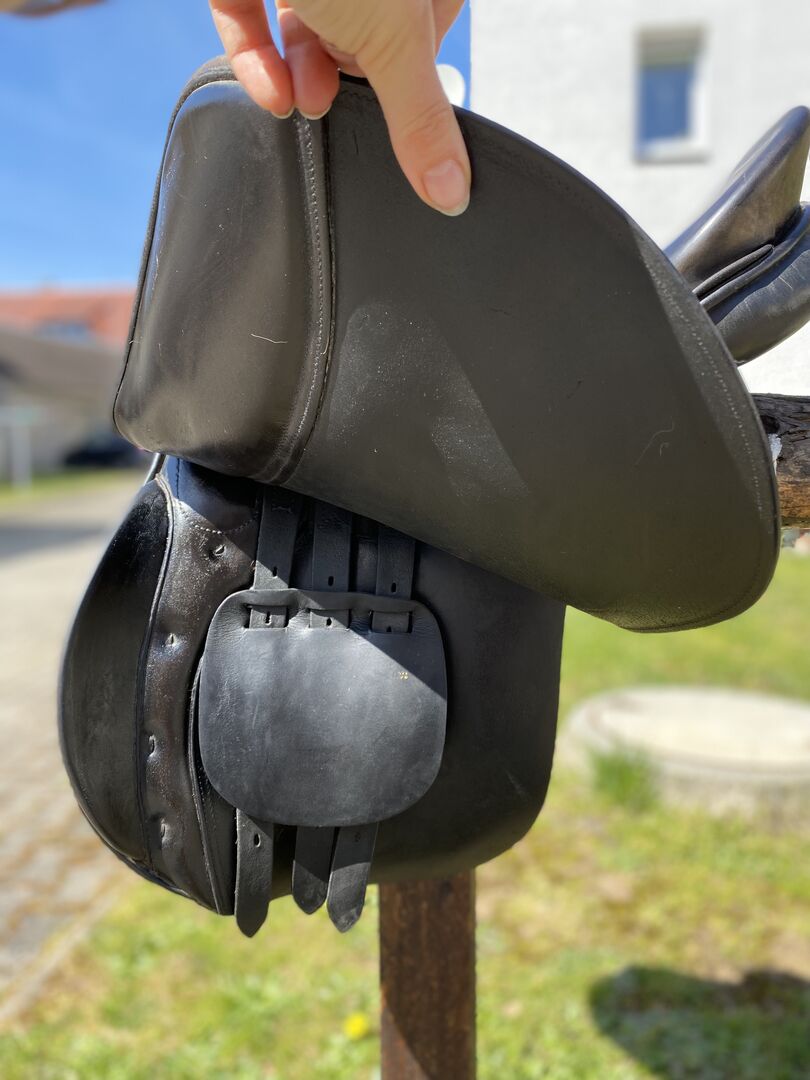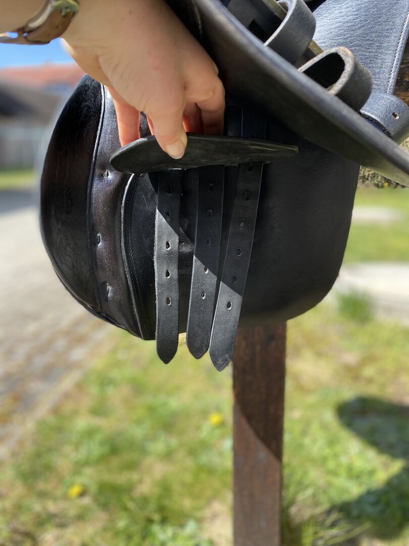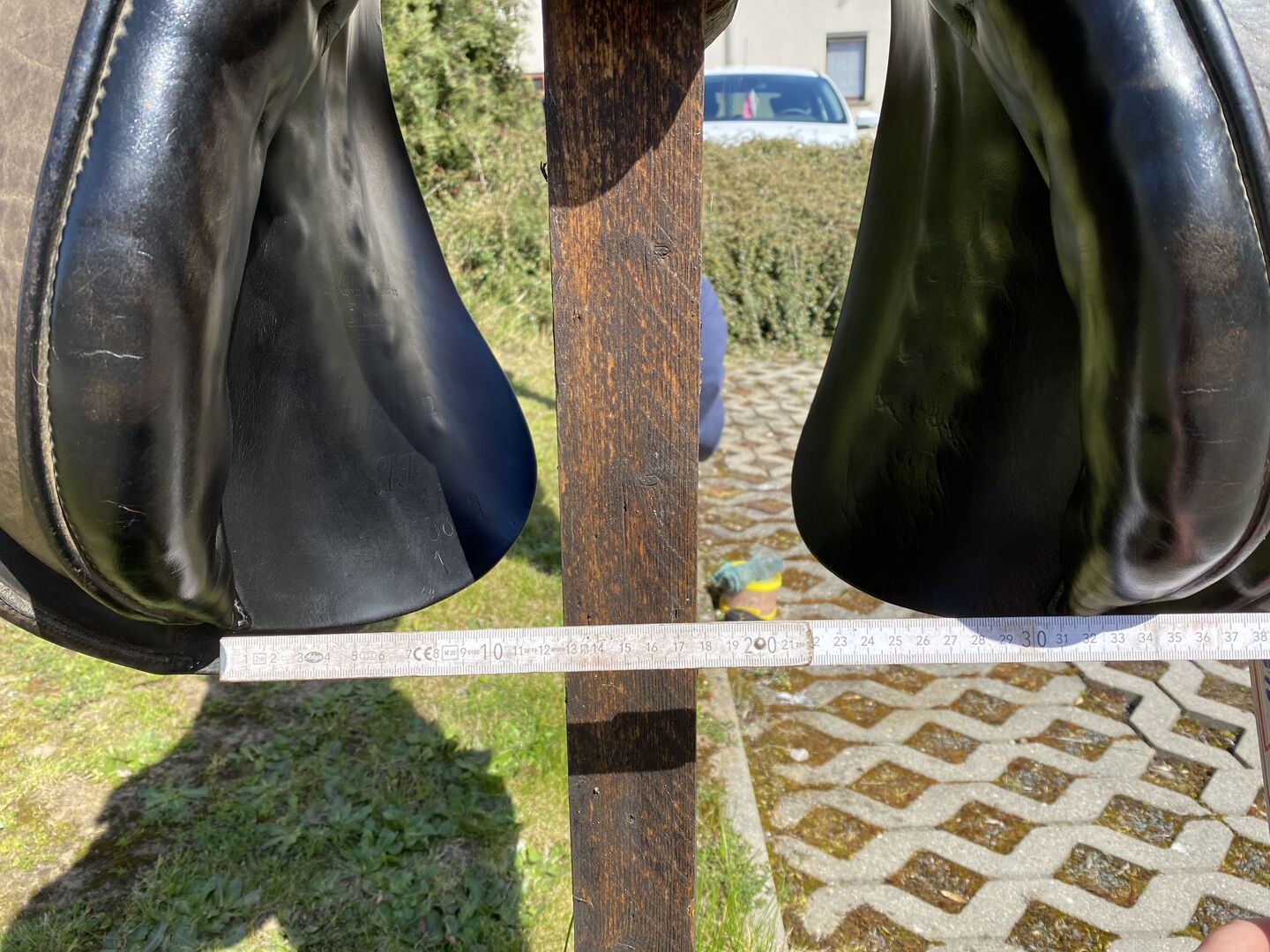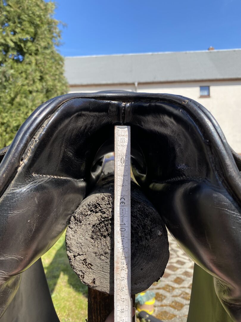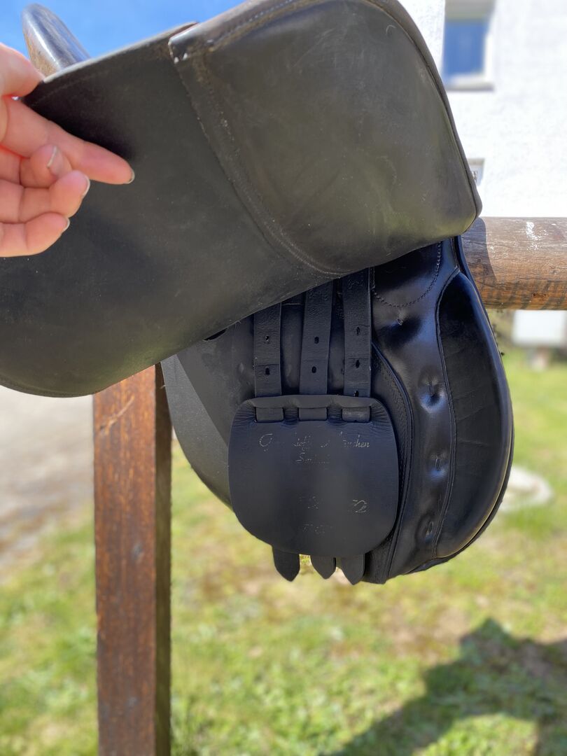 Kieffer Aachen AT Rozmiar gniazda 1, komora ok. 32 mm, VSD - Na sprzedaż używane siodełko Kieffer Aachen AT w kolorze czarnym. Rozmiar siedziska 1 so 17". Pokrycie siodła, a także skóry strzemion i ewentualnie strzemiona są wliczone w cenę. Komora powinna wynosić ok. 32. Miałem go dla niedawno wąskiego Trakehnera z dużą ilością kłębu.