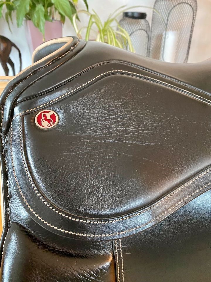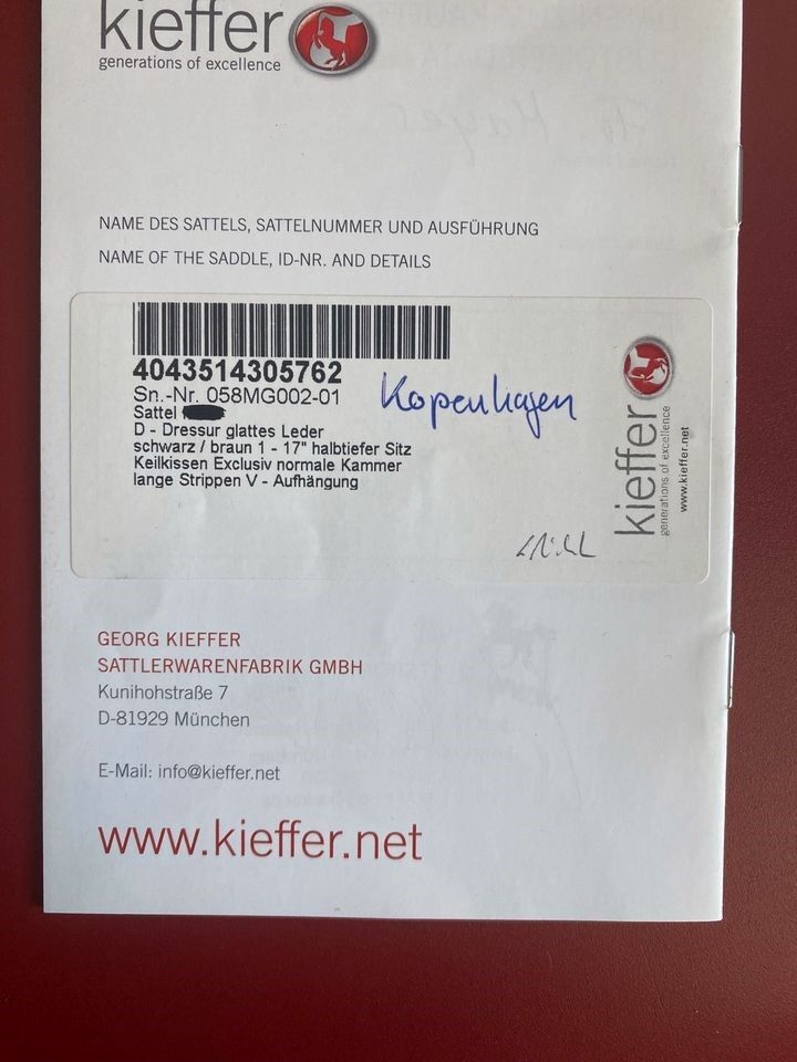 Kieffer Copenhagen Exclusive Dressage Saddle 17 Inch Gr 1 wNEW - Sprzedaję moje siodło ujeżdżeniowe od Kieffera w rozmiarze 1 (ok. 17- 17,5 cala), ponieważ jest w stanie mint, ponieważ mój koń schudł tak bardzo, że już nie pasuje. Podwójna skóra Siodło jest czarne z białymi przeszyciami i zdobieniami. Siodło nie było długo używane i jest w dobrym stanie, ponieważ zawsze je czyściłam i dbałam o nie. Normalna szerokość puślisk (ok. 32) Faktura i paszport siodła są obecne Bezstopniowa regulacja i optymalne dopasowanie Innowacyjna płytka z wypustkami Wysoka sprężystość i elastyczność 5 lat gwarancji na bezpieczeństwo złamania drzewa siodła