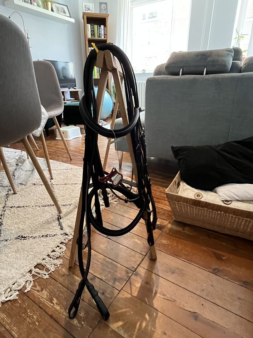 Kieffer curb bridle WB new - Sprzedam nową uzdę Kieffera, rozmiar WB w kolorze czarnym. Ma złote okucia i 2 pary skórzanych wodzy. Popręg, nosek i naczółek są miękko podszyte, ton w ton w kolorze czarnym. Skóra jest miękka i ma zwykle dobrą jakość Kieffer. Uzda nigdy nie była na koniu. (bity nie są wliczone w cenę) NP 142,50 € Sprzedaję je za 100 € plus wysyłka lub odbiór.