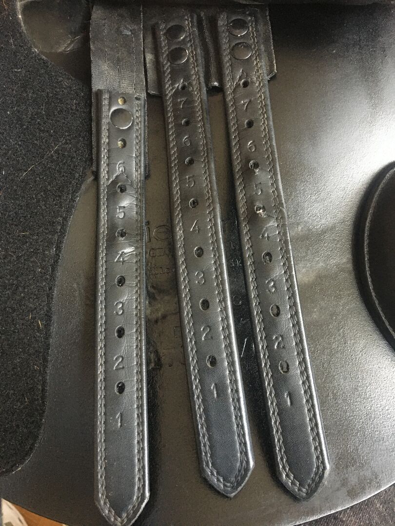 W zestawie skóry do strzemion z bezpiecznymi strzemionami (w zestawie nowe gumowe pierścienie i skórzane klapki) oraz pas od Kieffera (125 cm).