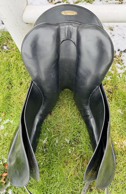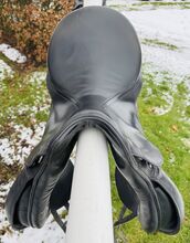Siodło jest w dobrym, używanym stanie i było regularnie konserwowane. Oferuje niezbędny komfort i odpowiednie wsparcie podczas pracy ujeżdżeniowej.