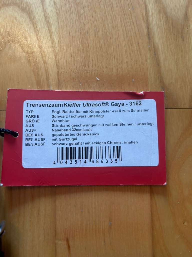 Hi Kristin Hilf , I am interested in your ad 'Kieffer Trensenzaum Ultrasoft Gaya Gr. WB NEU / Kieffer München Ultrasoft Gaya'. Please contact me!