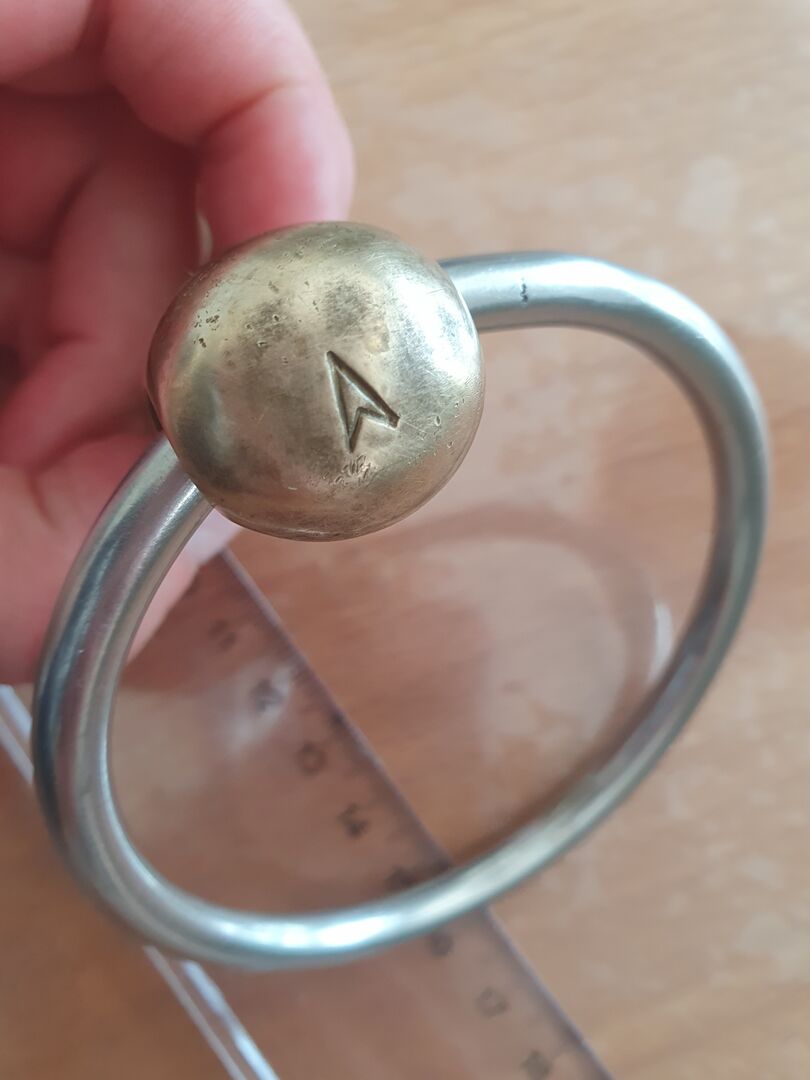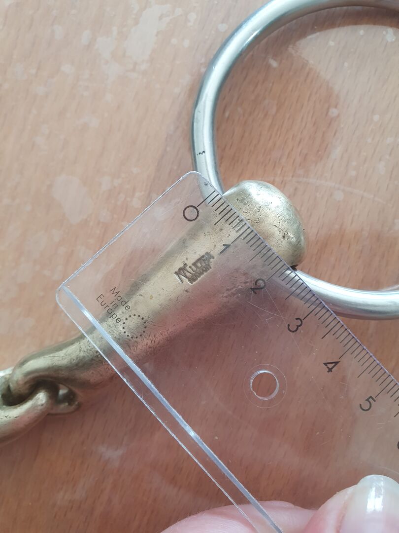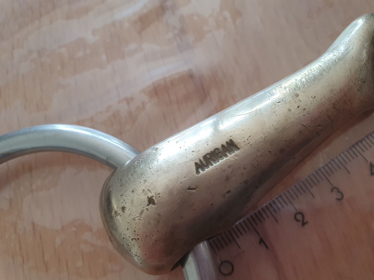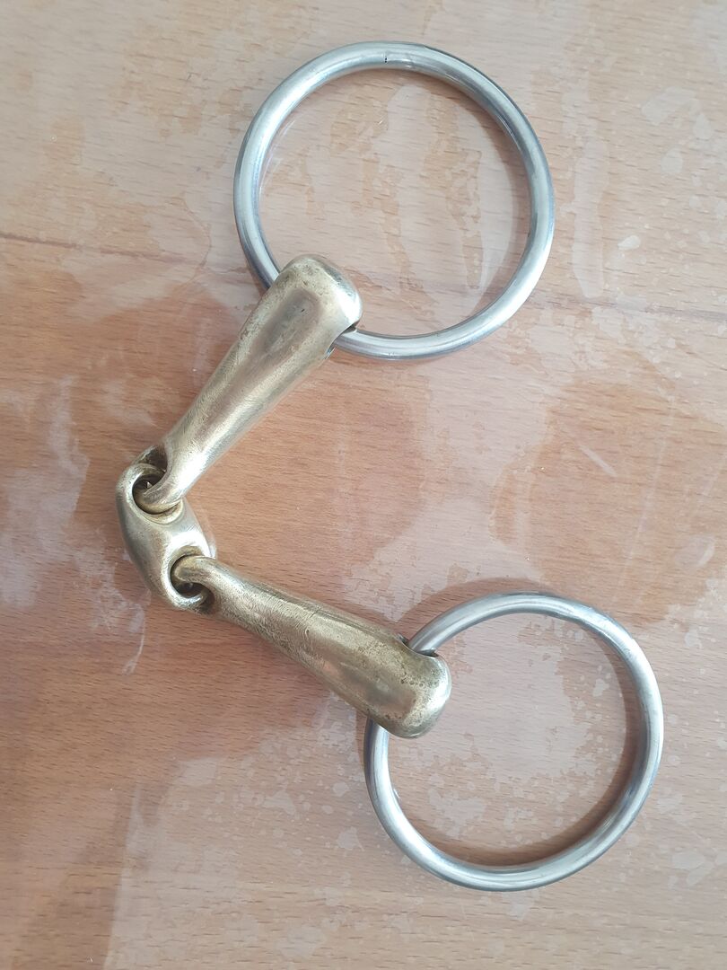 KK Ultra Bit od Sprenger, podwójnie łamany - Sprzedam używany podwójnie łamany bit KK-Ultra firmy Sprenger wykonany z Aurigan z pierścieniami wykonanymi ze stali nierdzewnej. Ma szerokość 14,5 cm i grubość około 21 mm. Widać na nim ślady użytkowania, ale nie ma ostrych krawędzi.