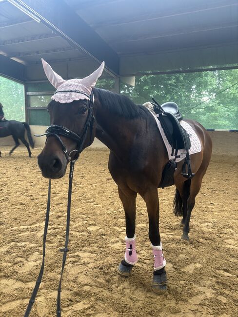 Klacz Dream / klacz westfalska / 8 lat / wygrała A* - Z ciężkim sercem sprzedaję moją 8-letnią klacz westfalską Fabina11, nazywamy ją Fabia lub Fabi. Niestety, z powodów zdrowotnych nie jestem już w stanie oddać jej sprawiedliwości. Jeździła na niej również moja 12-letnia córka. Ma dużo odwagi, ale zawsze jest łatwa w obsłudze, nie kopie, nie buksuje ani nie dosiada! Lubi jeździć sama, ale także w grupie i lubi być z przodu. Ma doświadczenie w zawodach i została umieszczona i wygrała do A *. Jest wiele miejsca na poprawę. Świetny rodowód. Interesująca również do hodowli. Sire For Dance / klacz po Sir Heinrich Old. Ma wspaniałe chody. Ujeżdżenie to jej żywioł, ale dobrze skacze. Lubi również lonżowanie z tyczkami i pracę z ziemi. Jest regularnie szczepiona, odrobaczana, ma regularnie robione zęby, a także 2-3 razy w roku ma osteoporozę. Załadunek i jazda na przyczepie również nie stanowią problemu, może być załadowana sama. Chciałbym sprzedać ją z jej spersonalizowanym siodłem ujeżdżeniowym Ikonic (które było 3300 €) uzdy, wszystkie kantary, a także jej koce i maskę na muchy, bandaże i pudełko pielęgnacyjne z akcesoriami, akcesoria są nieco poniżej 4000 €, a następnie VB