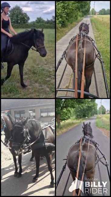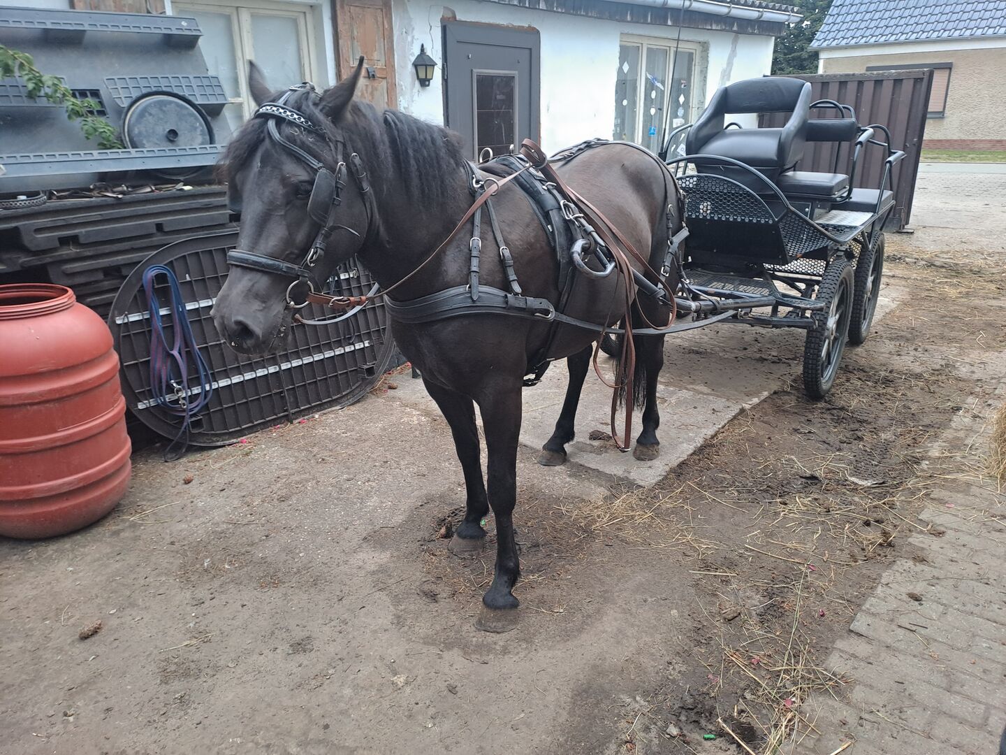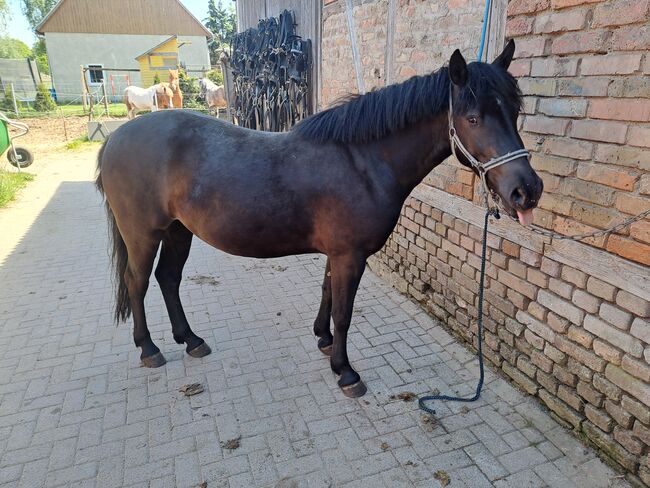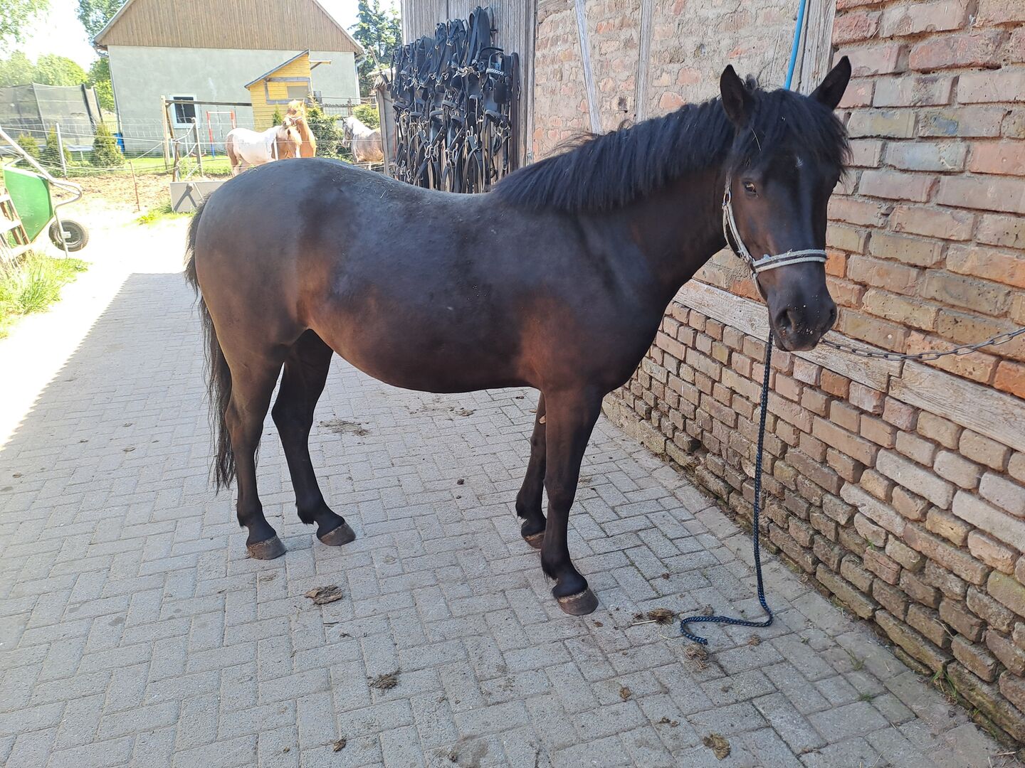 Klacz kuc czarny 1.44m powożenie/jeździectwo - Sprzedajemy naszą prawie 4-letnią klacz Jacky. Jacky była jeżdżona i ujeżdżana 1u2 latem i jesienią i zrobiła już kilka rund na ujeżdżalni, ale nie tak dużo, bo ma dopiero 3 lata. Jacky była również w terenie. Jacky jest super słodkim kucykiem z charakteru. Jacky dobrze radzi sobie z jednym i dwoma końmi w swoim wieku. Jeśli jesteś poważnie zainteresowany i masz jakieś pytania, zadzwoń na 01625658842.
