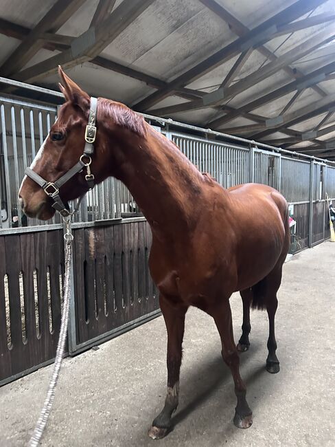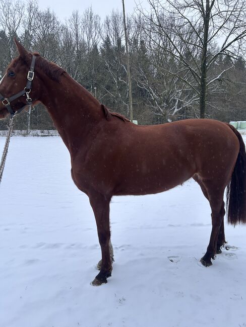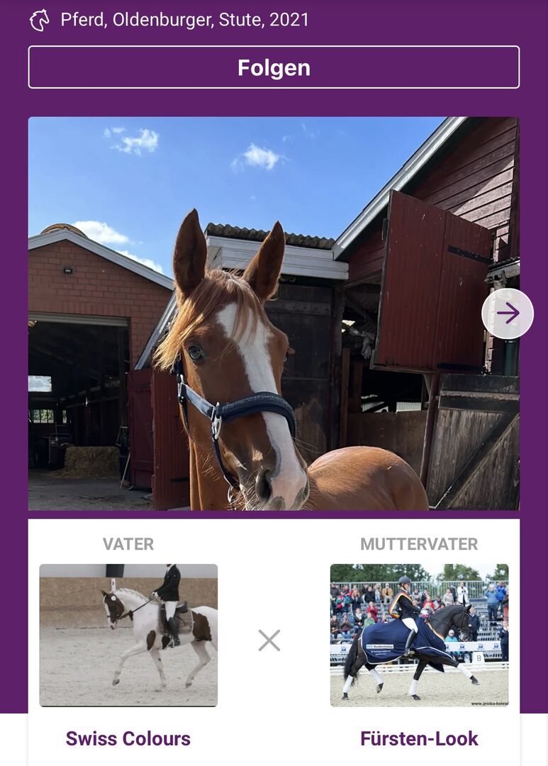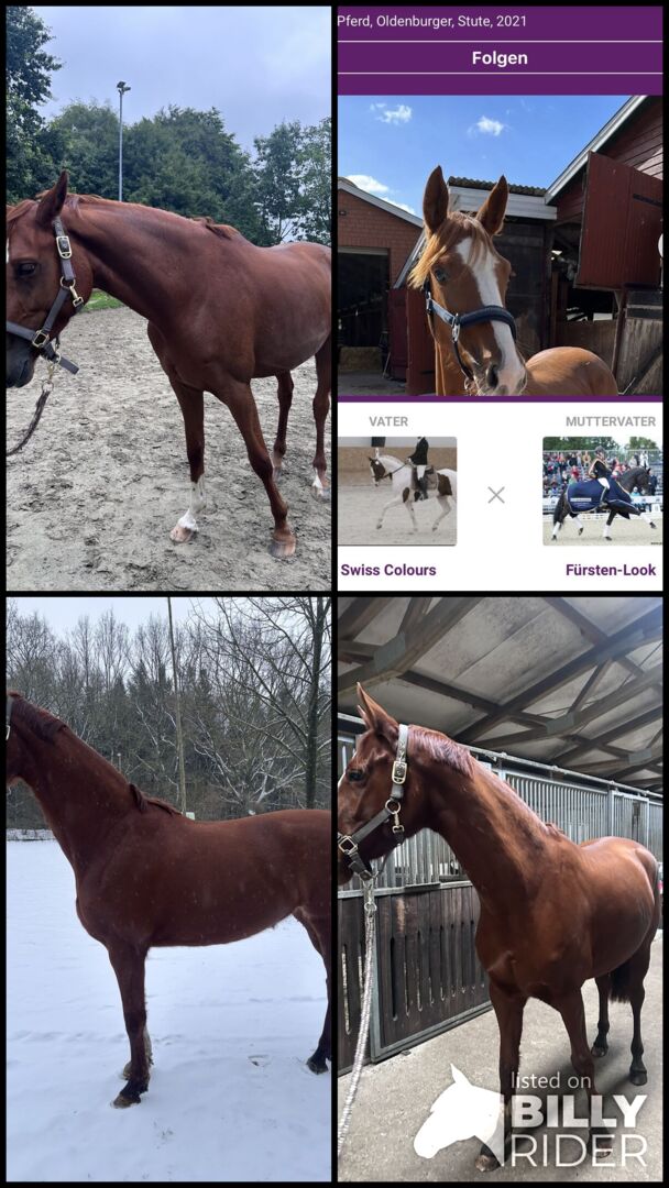 Dlatego moja 5-letnia kasztanowata klacz oldenburska o usposobieniu ujeżdżeniowym, ok. 1,54 m wzrostu, szuka nowego partnera. |Urodzona 06.21. |matka: Farbenspiel / ojciec matki: Fürstenlook |Ojciec: Swiss Colours