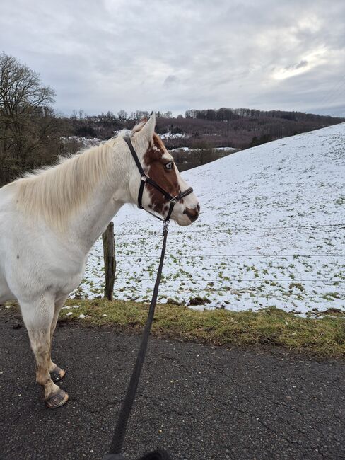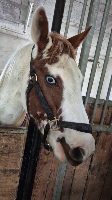 Klacz Paint-Mix - Moja klacz Brada, urodzona 20.05.13, jest na sprzedaż. Stm. 148cm. Wyszkolona w stylu western i angielskim. Obecnie pracuje lekko i głównie z ziemi. Lubi jednak jeździć w teren.