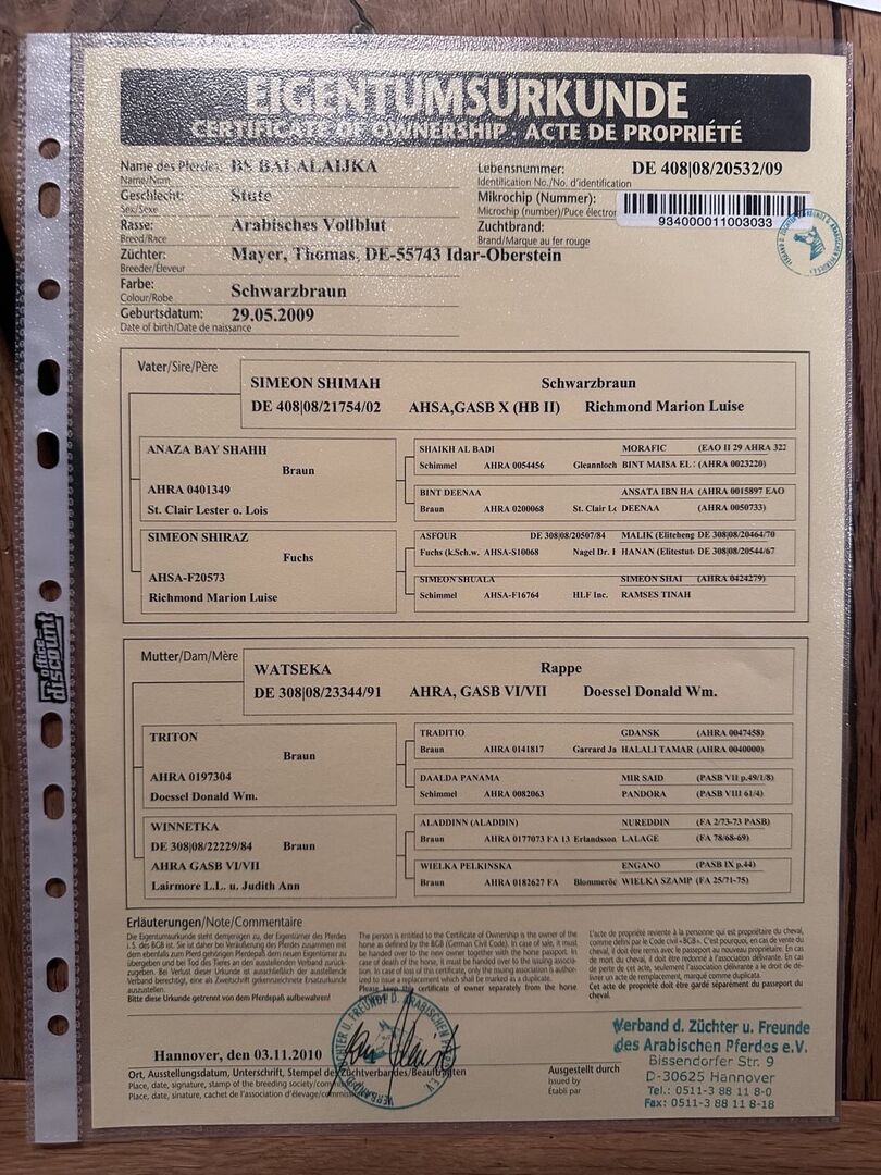 Jest pokryta czarnym ogierem Asil Egyptian BS Echnaton na rok 2026.