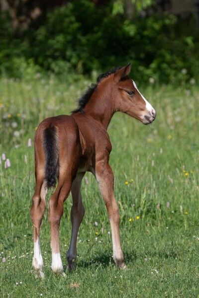 Po roku treningu, podczas którego Pieps była również ujeżdżana przez profesjonalistę, zdecydowałam się na jej hodowlę. Od tego czasu miała trzyletnią przerwę i dwa zdrowe źrebaki. Zdjęcia źrebiąt są załączone pod tym postem. Pieps jest zarejestrowana jako klacz hodowlana w PHCG i EWHB. Dostępny jest 6 panelowy test n/n.