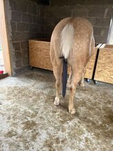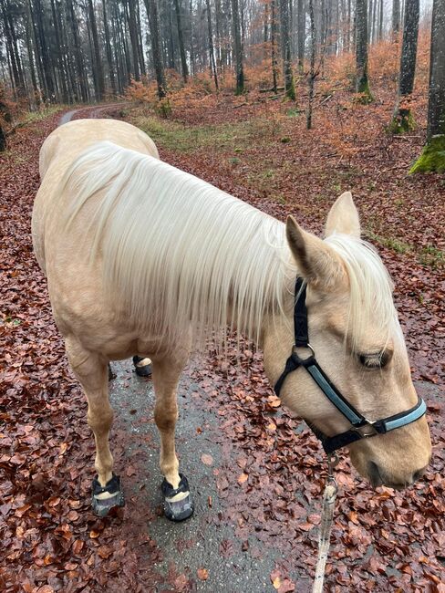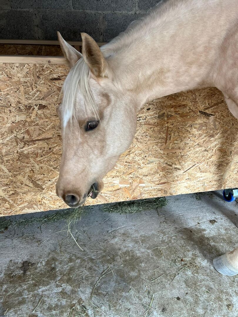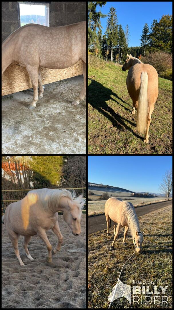 Klacz rasy Palomino Quarter Horse z najwyższej klasy rodowodem reiningowym - Lokalizacja: 72547 Bad Ulrach Przyciąga wzrok charakterem, jakością i potencjałem na przyszłość! Ze swoim kolorem palomino, zwartą, mocną budową i bardzo dobrym umięśnieniem, Mobsters Trashya natychmiast przyciąga uwagę wszystkich. Urodzona 18 kwietnia 2022 roku klacz rasy Quarter Horse mierzy obecnie około 145 cm, jest prawidłowo zbudowana, zdrowa i imponuje wysokiej jakości rodowodem reiningowym (HF Mobster x Gunnatrashya). Najlepsze warunki wstępne dla udanej przyszłości sportowej lub wymagającego partnera rekreacyjnego. Maggie ma kochający, zorientowany na ludzi i przytulny charakter. Jest ufna, dobrze wychowana i łatwa w codziennej obsłudze, ale potrzebuje jasnych zasad i konsekwentnej, uczciwej zachęty. Jako inteligentna młoda klacz, chce być regularnie poddawana pracy, która będzie dla niej wyzwaniem zarówno psychicznym, jak i fizycznym. Nieregularna praca nie uczyni jej szczęśliwą na dłuższą metę. Ze względu na swój wiek i poziom wyszkolenia nie jest więc koniem dla początkujących, ale idealnym dla ambitnych jeźdźców, którzy lubią trenować utalentowanego młodego konia. Klacz jest lekko zajeżdżona i była już kilka razy dosiadana na crossie. Jest zaznajomiona z weterynarzem i kowalem. Obecnie mieszka w otwartej stajni, zna zarządzanie stadem, jest szczepiona i regularnie odrobaczana. Maggie jest 6-panelowa n/n po rodzicach. Dzięki dobrym chodom, motywacji i mocnym podstawom ma duży potencjał do skoków pokazowych. Jest zarejestrowana w programie EWU dla młodych koni. Możliwa jest również podwójna rejestracja (AQHA i APHA). Czy to jako przyszły koń pokazowy, czy jako wysokiej jakości partner rekreacyjny z perspektywami - ten młodzieniec jest prawdziwą obietnicą na przyszłość.