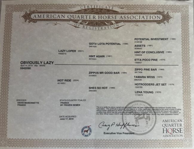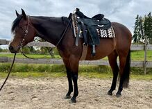 Klacz rasy Quarter Horse 2019 - "Obviousy Lazy" / Joria - Klacz Quarter Horse 2019 - "Obviousy Lazy" / Joria - utalentowana wszechstronna i niezawodna partnerka na zawody i czas wolny Na sprzedaż jest wyjątkowo uczciwa i utalentowana klacz rasy Quarter Horse z 2019 r. Pod swoim imieniem hodowlanym "Obviousy Lazy", pieszczotliwie nazywana w stajni "Joria", prezentuje się jako pewna siebie, wrażliwa i dobrze wyszkolona partnerka jeździecka dla jeźdźców, którzy szukają niezawodnego konia, który jest równie przekonujący w treningu, jak w terenie. Joria imponuje spokojnym, jasnym usposobieniem i ma już doświadczenie zawodnicze. Jest pewna siebie na crossie, wrażliwa na pomoce i zawsze przyjemna w obsłudze. Mimo swojej niezawodności jest jeszcze młoda, dlatego powinna być trenowana przez doświadczoną osobę, która dobrze zna się na jeździe western i ceni sobie harmonijną współpracę z koniem. Kluczowe dane i cechy szczególne: - Klacz rasy Quarter Horse, urodzona w 2019 r. - Imię hodowlane: Obviousy Lazy - Imię stajenne: Joria - Niezawodna, wrażliwa, pewna siebie klacz - Doświadczona na zawodach, ale również idealna jako partner do rekreacji - Wrażliwa i trzeźwo myśląca - Odpowiednia dla jeźdźców z westernowym doświadczeniem - PSSM II Cena: 18 000 € VB Joria jest koniem serca i zostanie sprzedana tylko w najlepsze ręce. Jeśli szukasz długoterminowego, pełnego szacunku partnerstwa z utalentowaną klaczą o silnym charakterze, czekamy na wiadomość od Ciebie